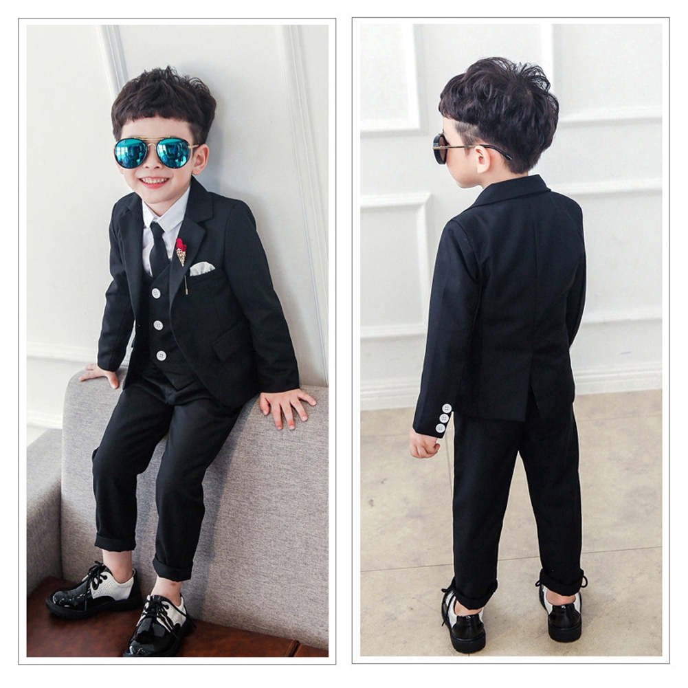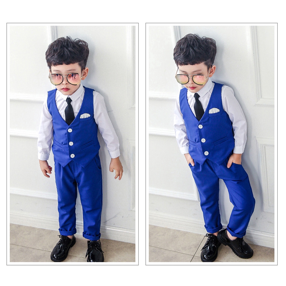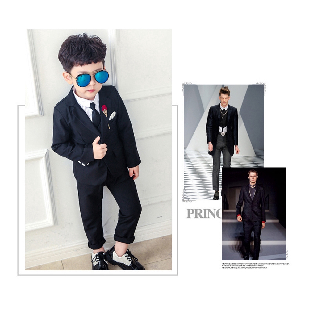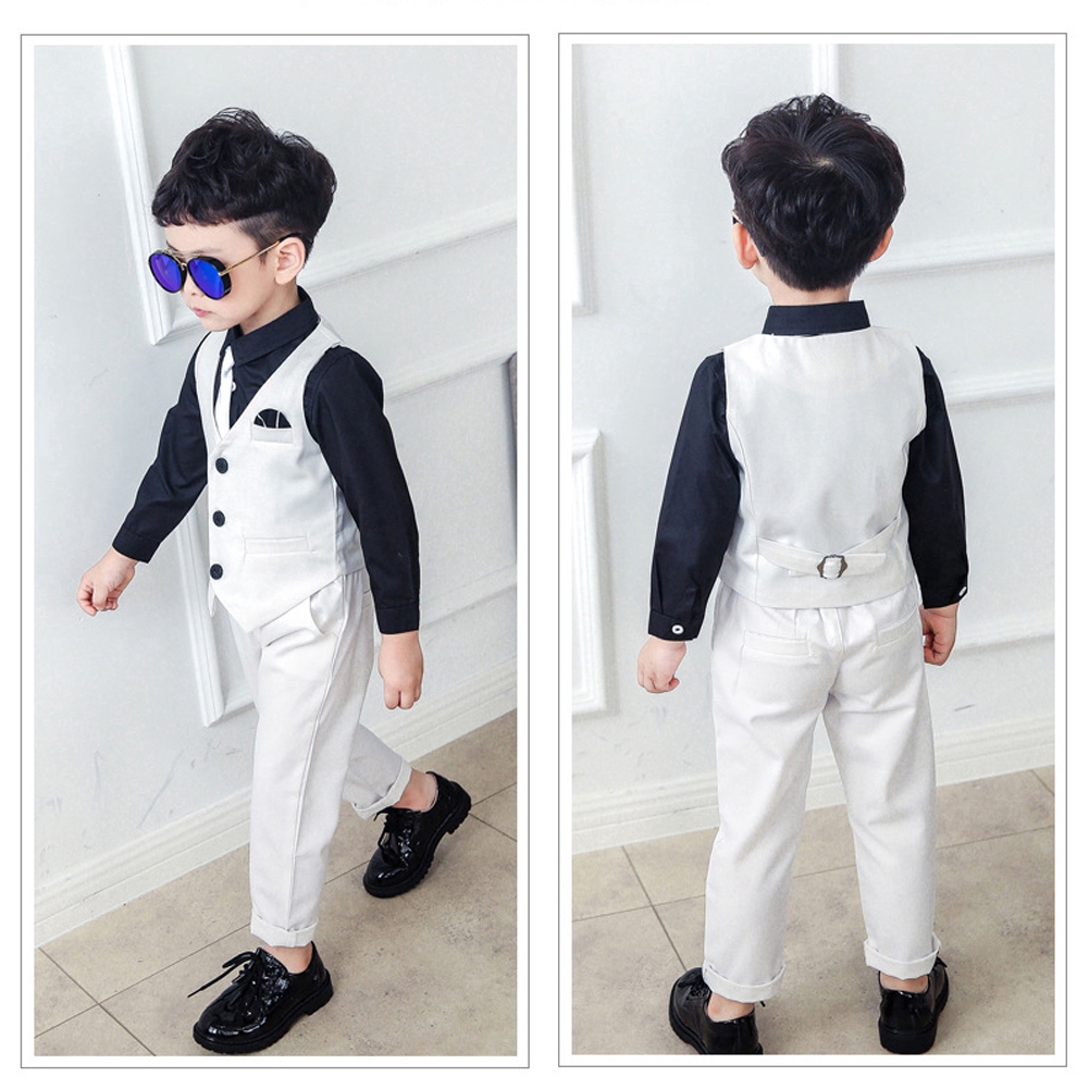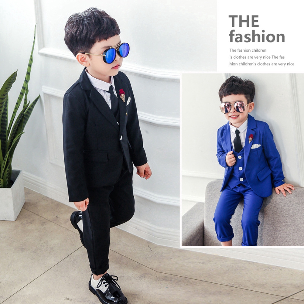Kids Gentleman Slim Fit Suit Boys Wedding Party Graduation Gown Formal Attire Suits Blue White Black Tuxedo Set Ready stock