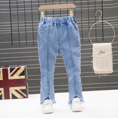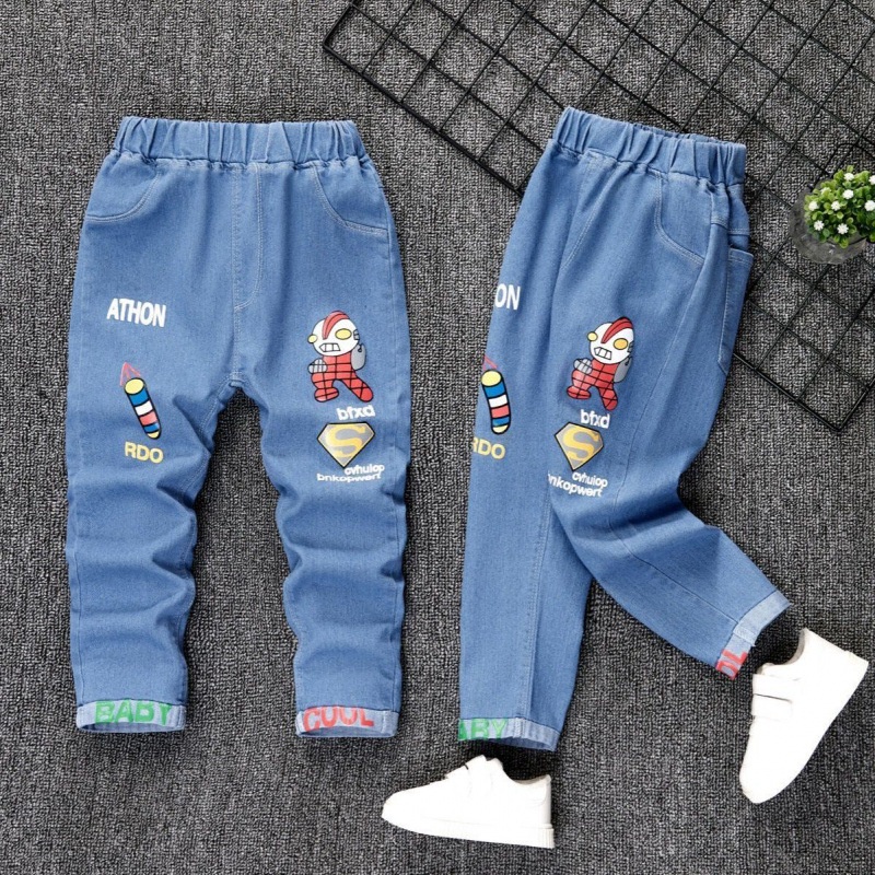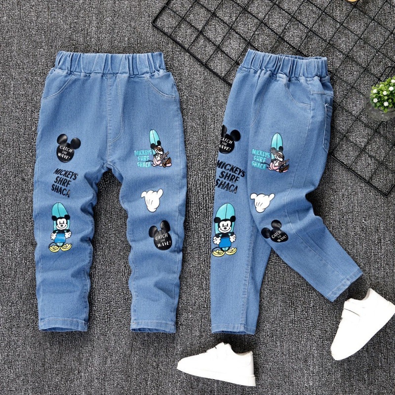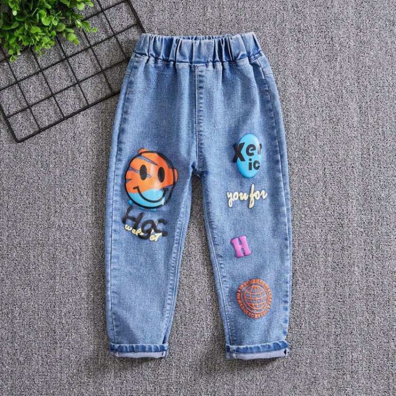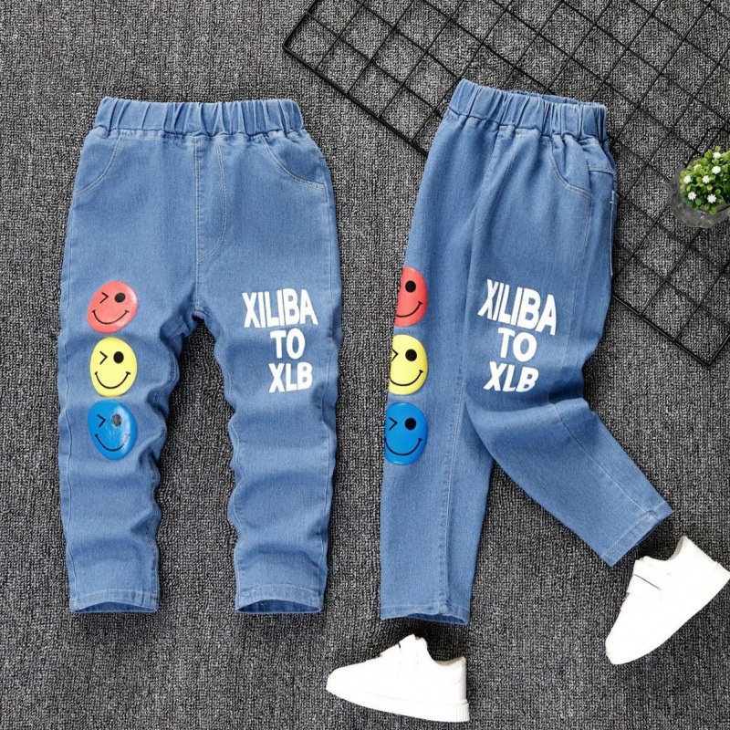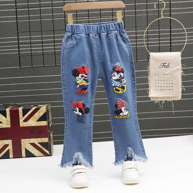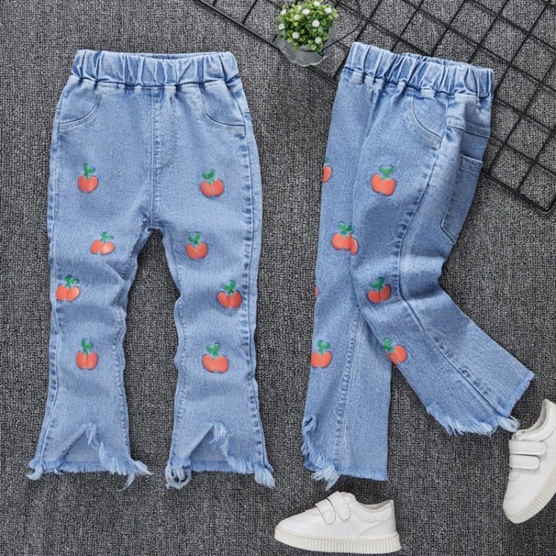 Kids Girl Jeans Floral Cartoon Long Pants Spring Autumn Graffiti Painting Print Casual Denims Short Trousers with Hole Painting