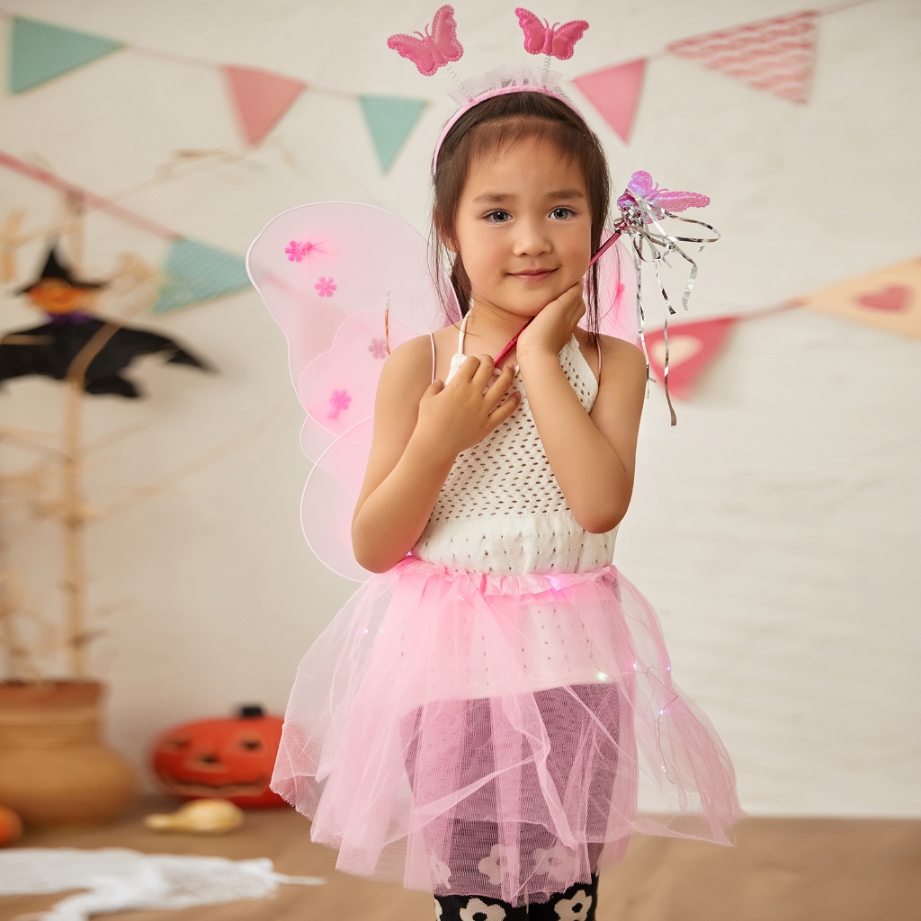 Kids Girls Fairy Costume Set Light Up Butterfly Wing Mesh Tulle Skirt and Headband Fairy Wand for Co