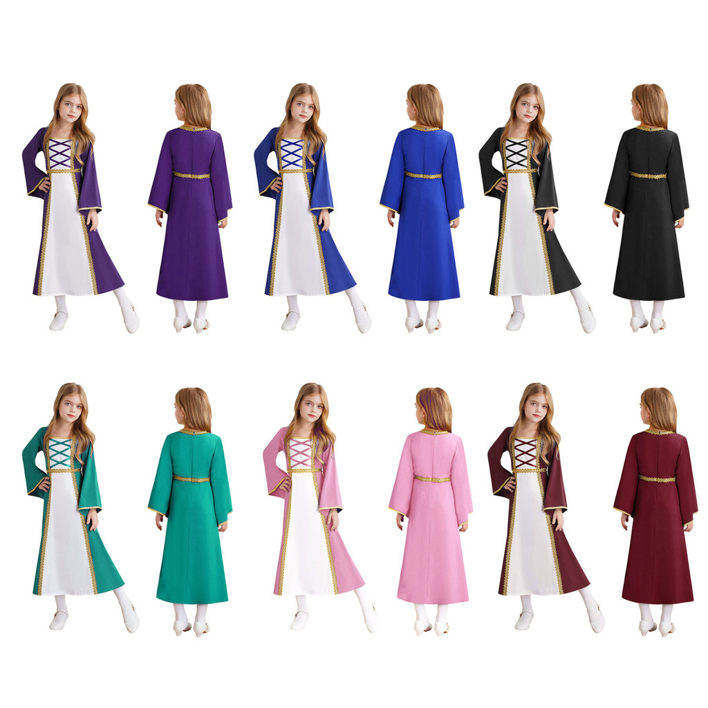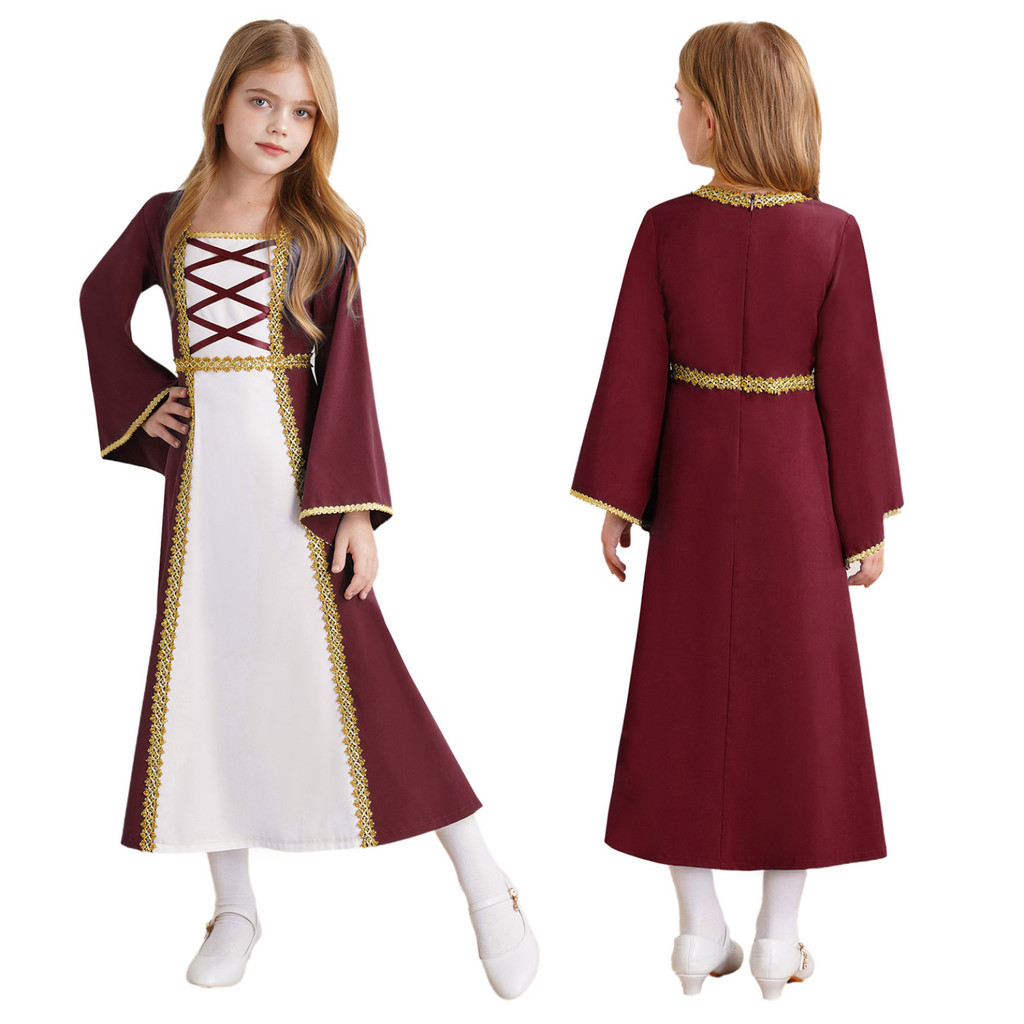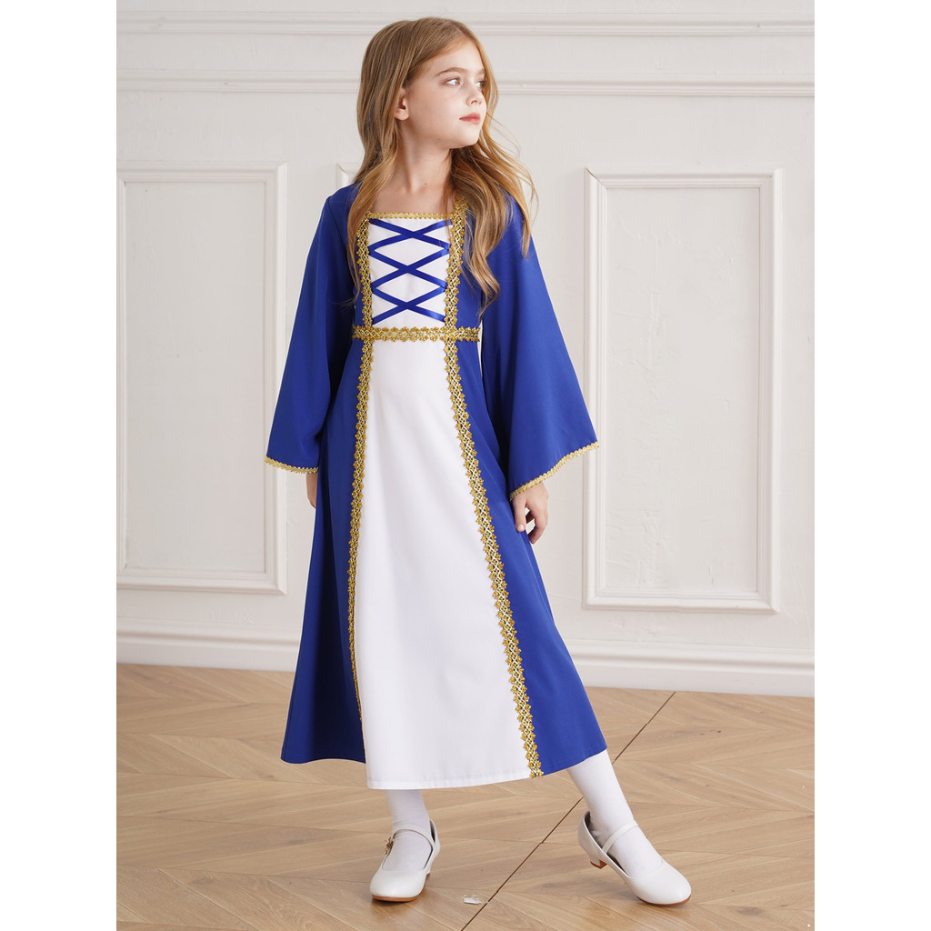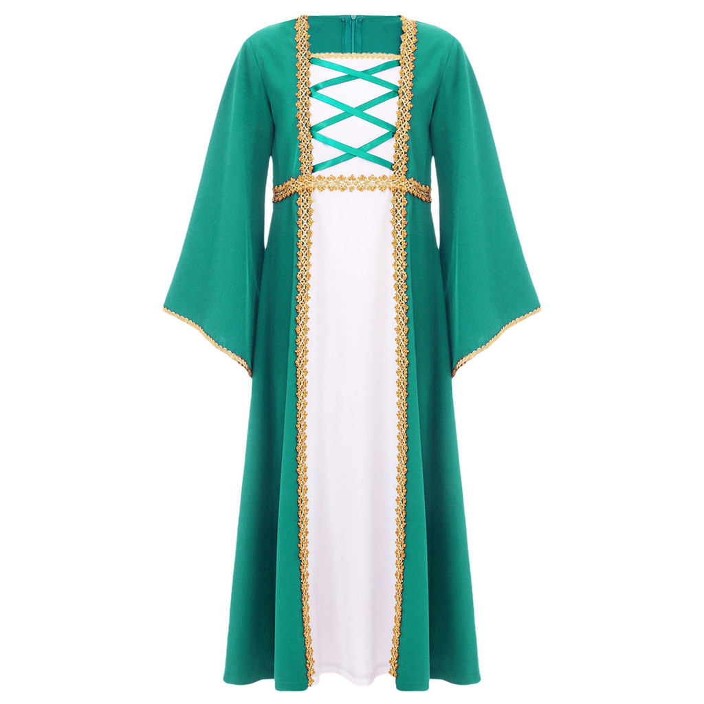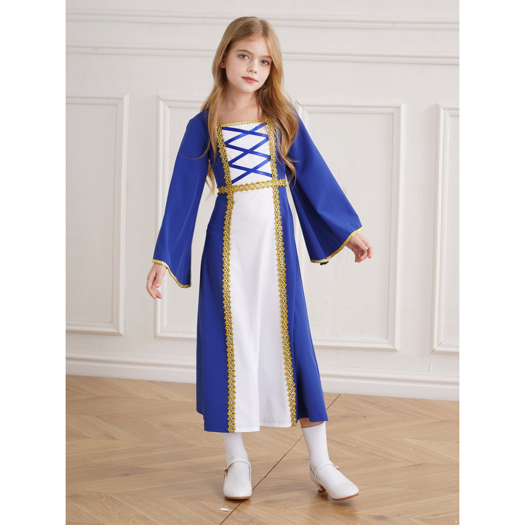 Kids Girls Medieval Renaissance Royalty Princess Dress Costume Dress Up Fancy Costume Gown for Halloween Party Stage Performance