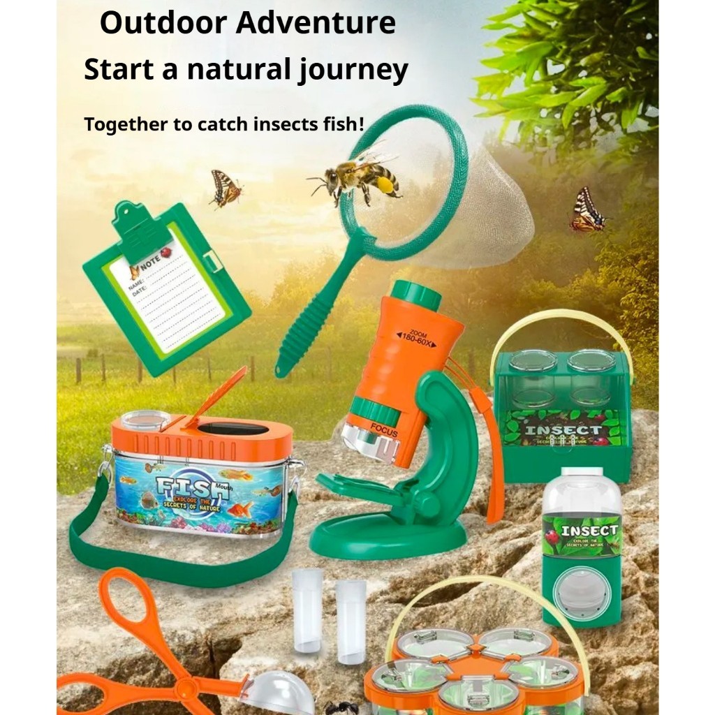 Kids Insect Exploration Kit 8PCS Outdoor Science Toys Magnifier Bug Catcher & Flashlight STEM Gift