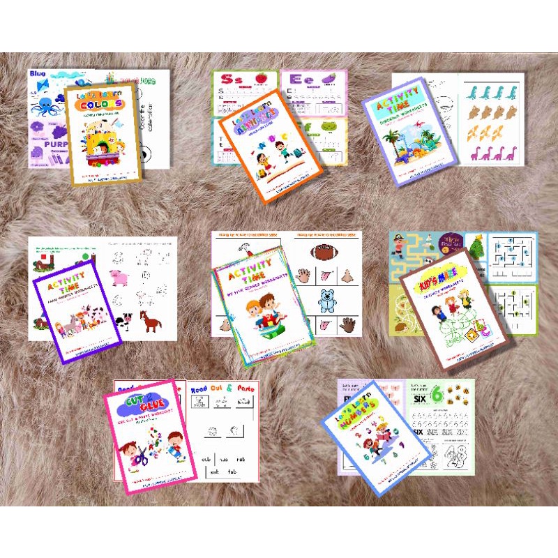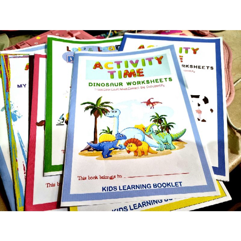 Kids Learning Booklet / alphabet, numbers, colors, sense, animals, maze, dinosaur activity booklet