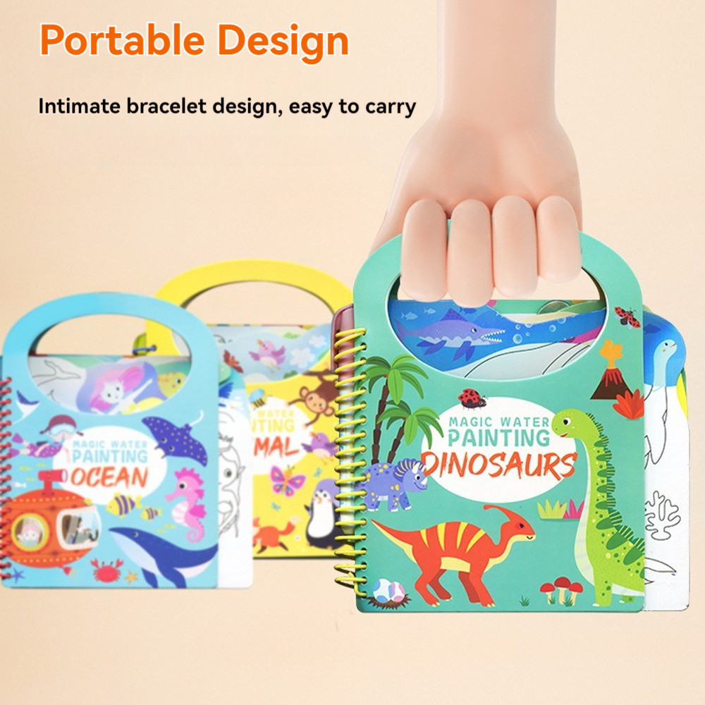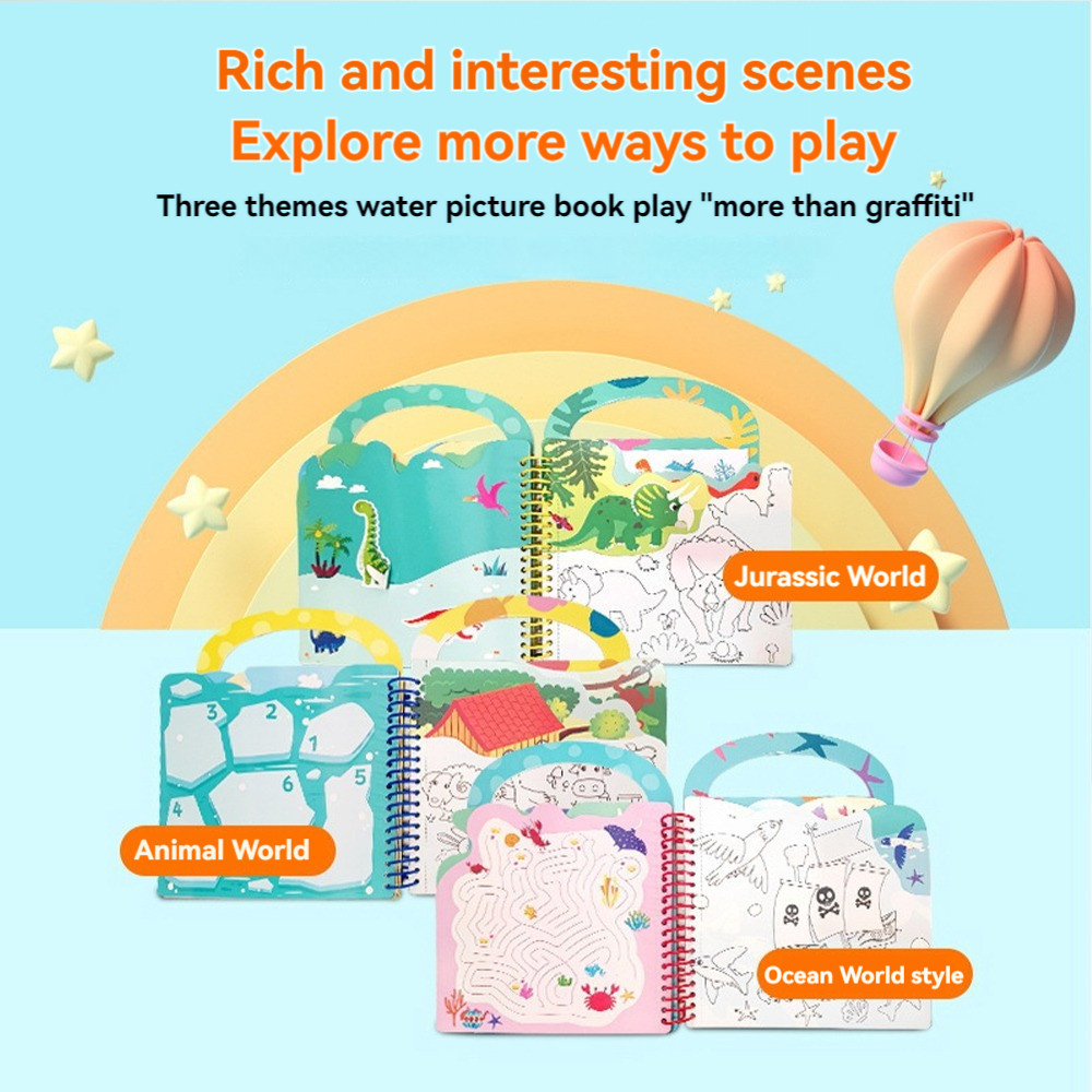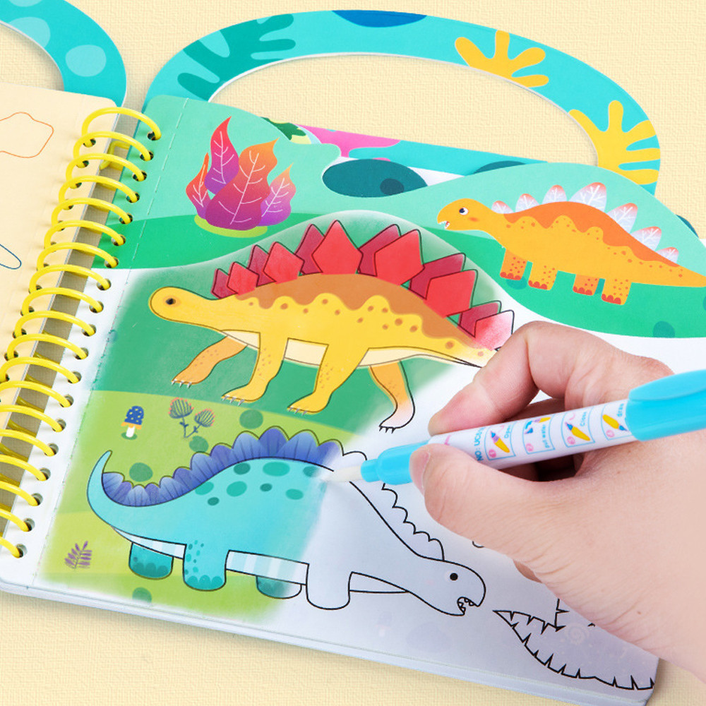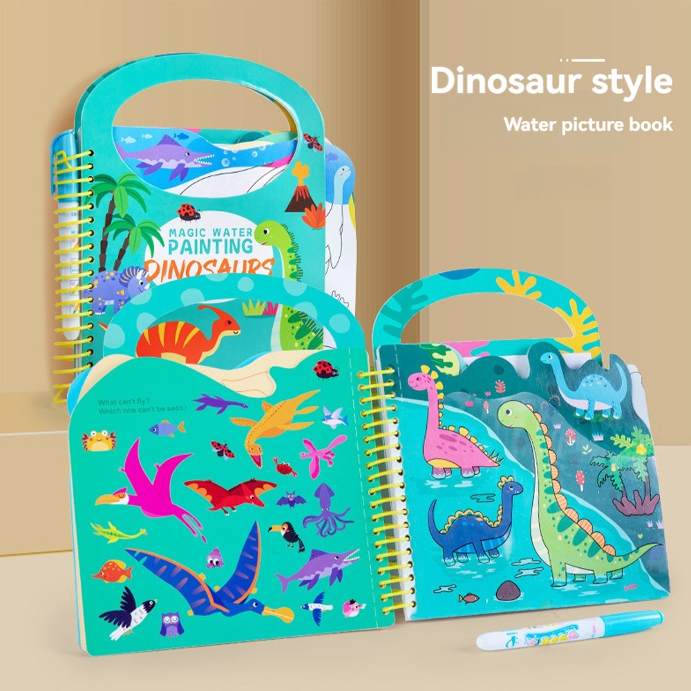 Kids Magic Water Coloring Book Marine Dinosaur Travel Water Painting Reusable Kids Learning Drawing