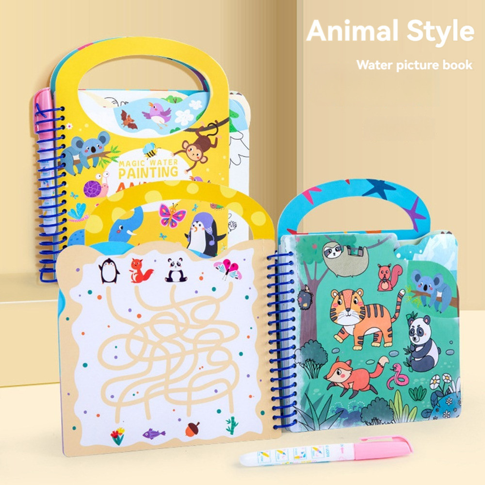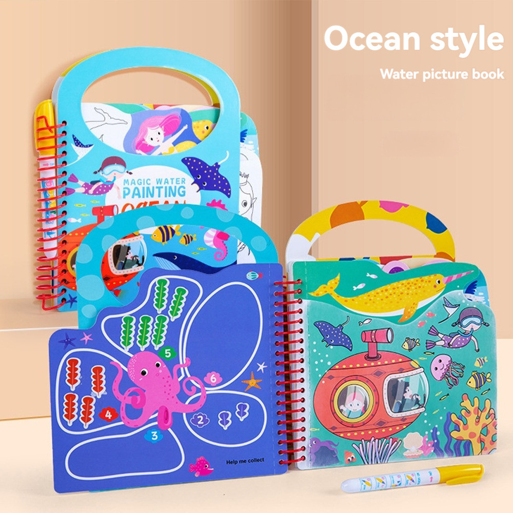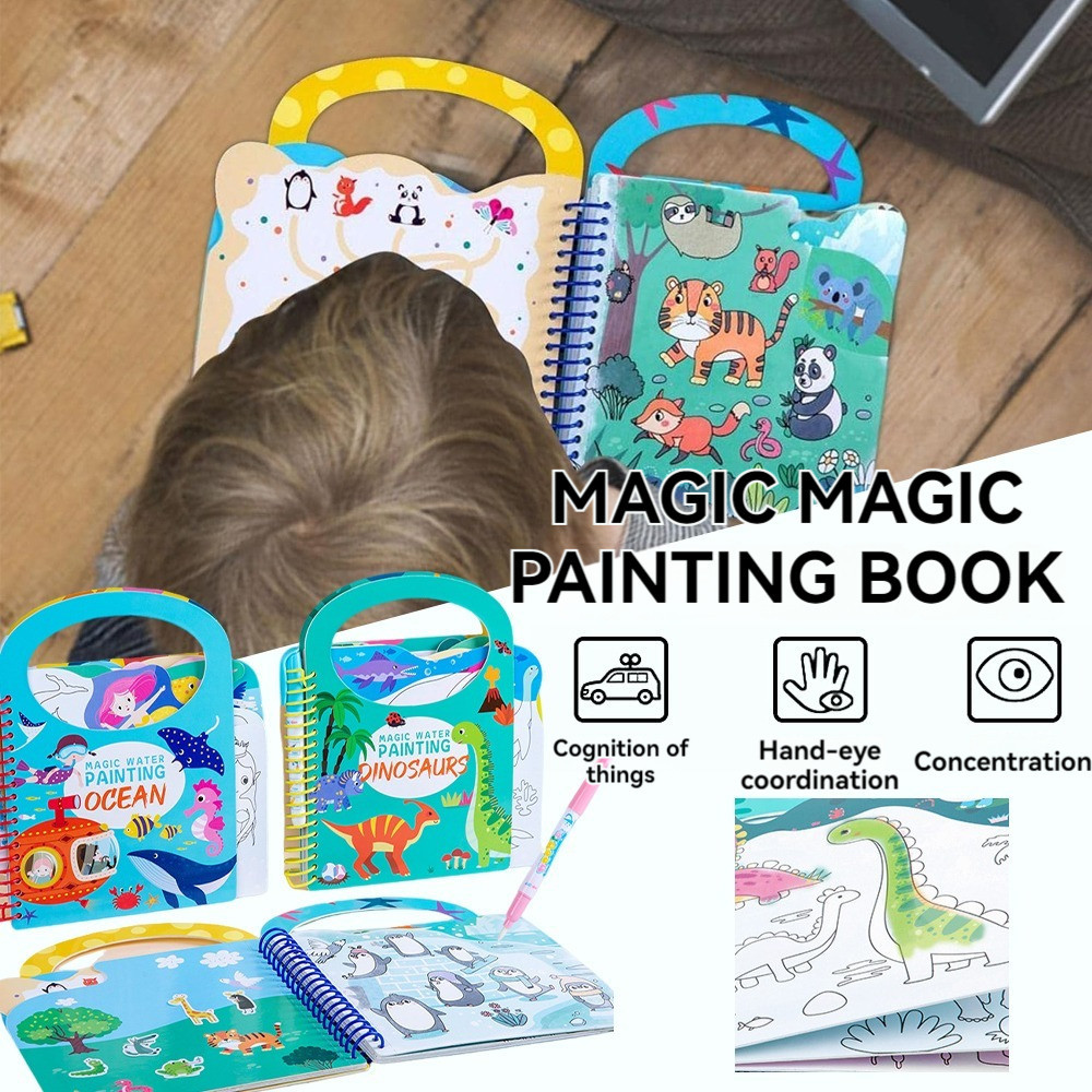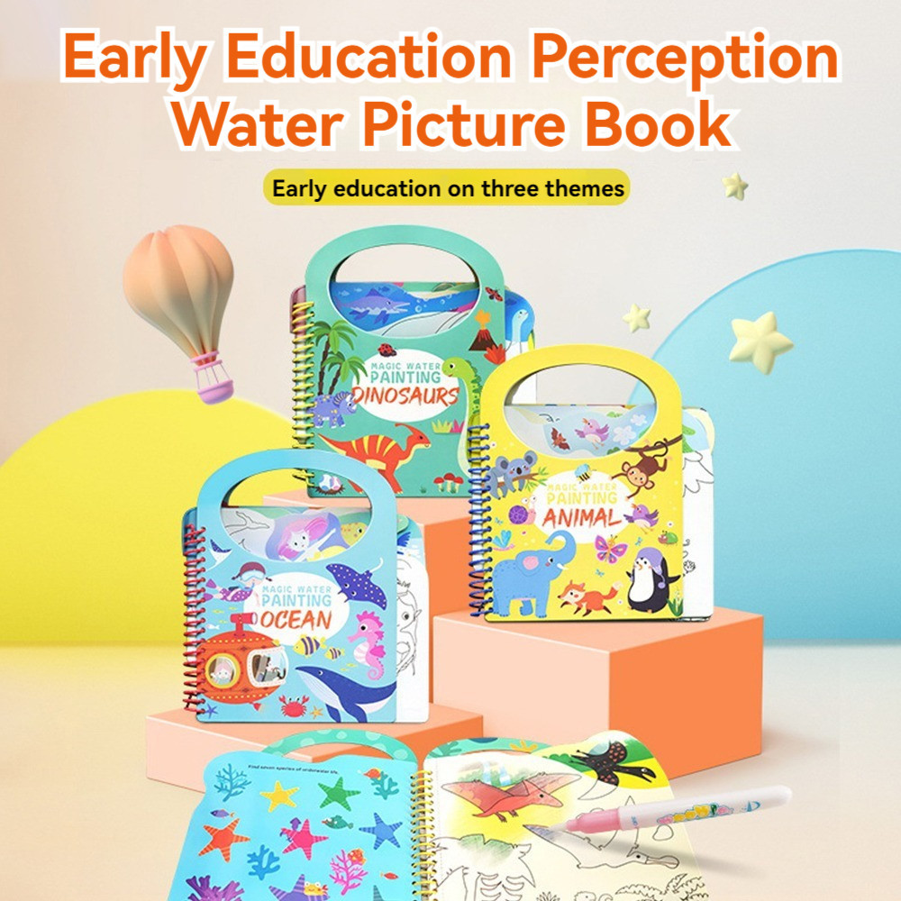 Kids Magic Water Coloring Book Marine Dinosaur Travel Water Painting Reusable Kids Learning Drawing