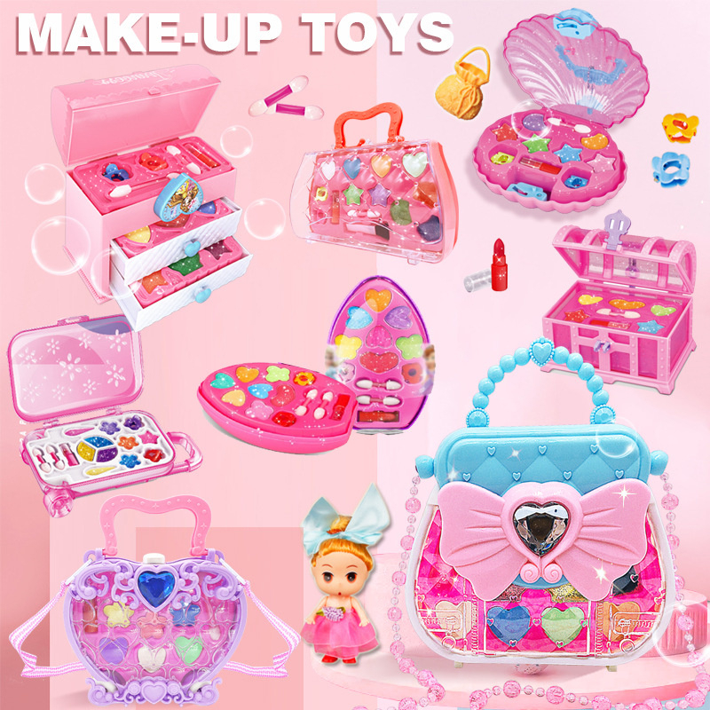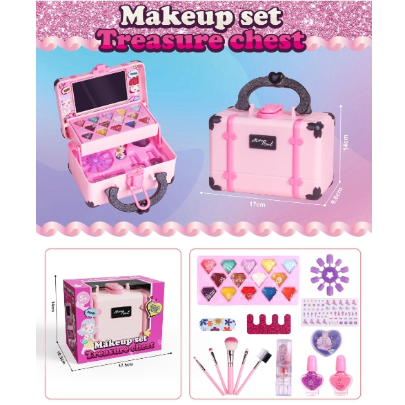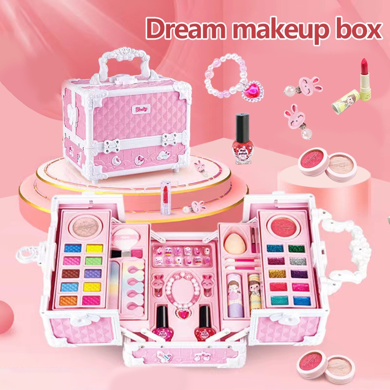 Kids Makeup Kit for Girl Washable Makeup Set Toy with Real Cosmetic Box Pretend Play Makeup Box