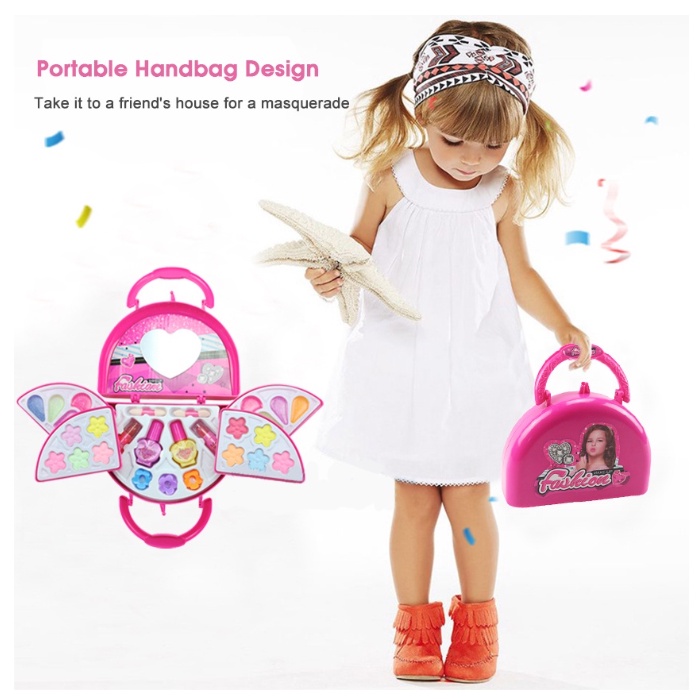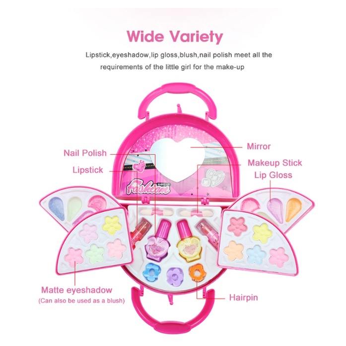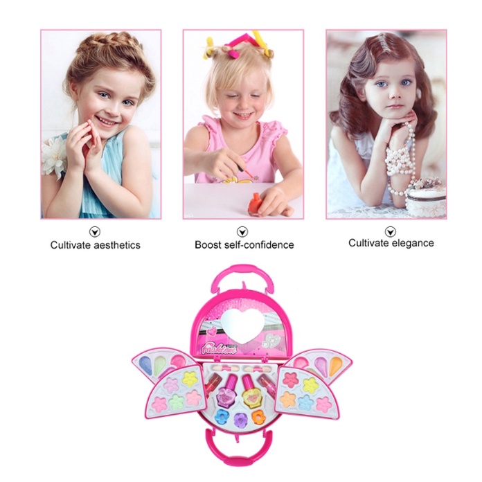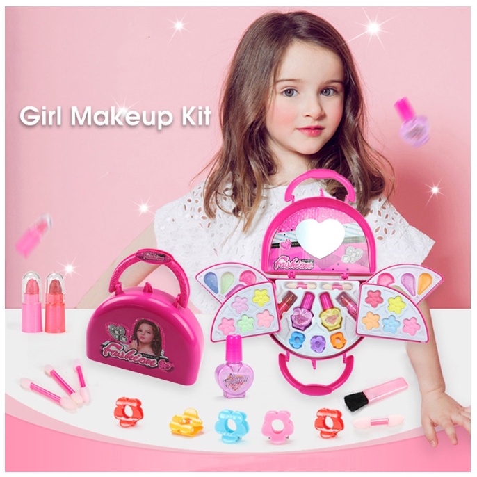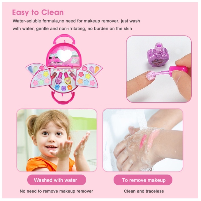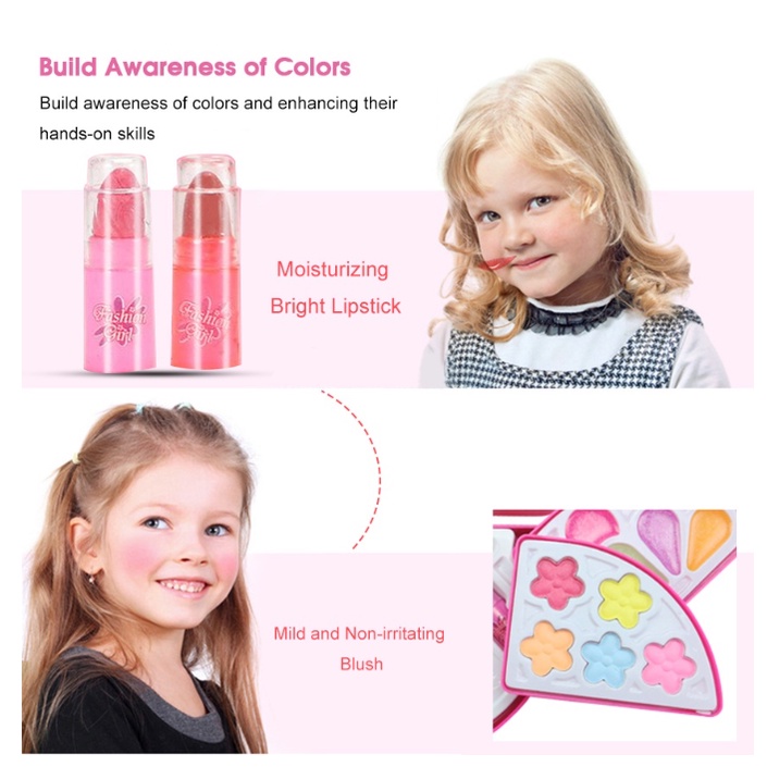 Kids Makeup Kit for Girls Princess Real Washable Cosmetic Pretend Play Toys with Mirror