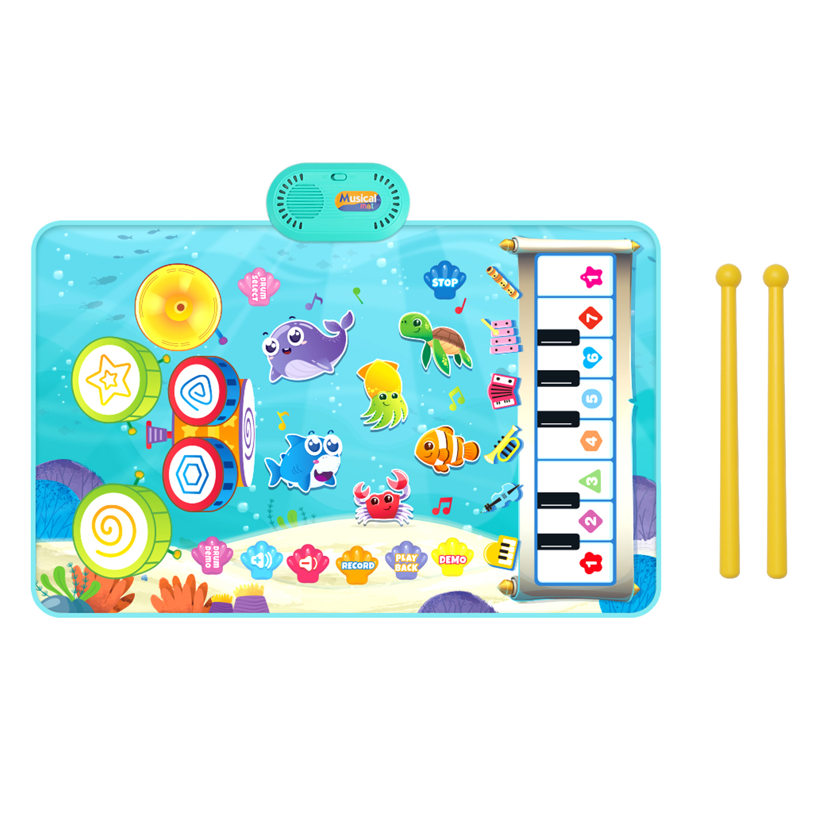 Kids Musical Mat Piano Keyboard & Jazz Drum 2-in-1 Musical Toys for Toddlers Touch Play Floor Music Playmat Education Learning Toys Gifts