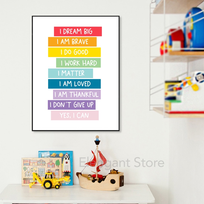 Kids Positive Affirmation Art Prints Mindfulness Poster Self Confidence Quotes Canvas Painting Wall Art Pictures Classroom Decor