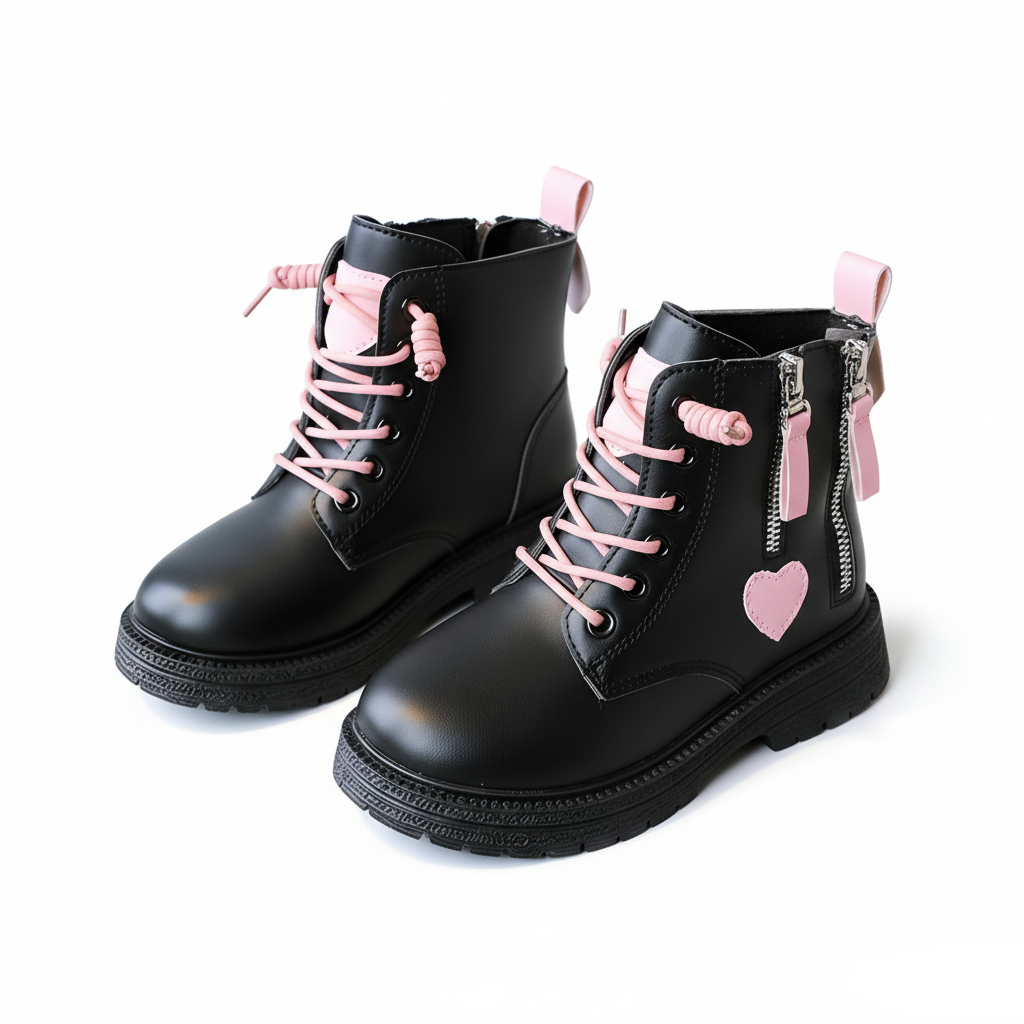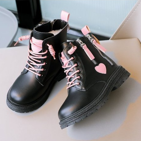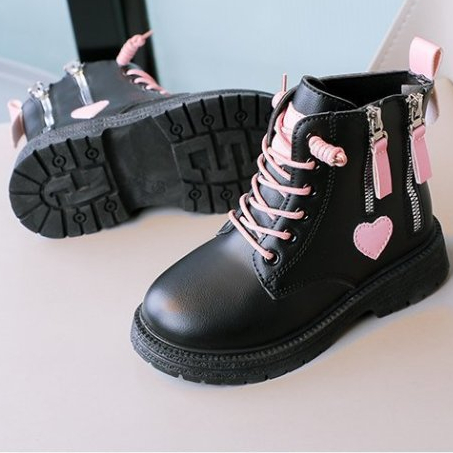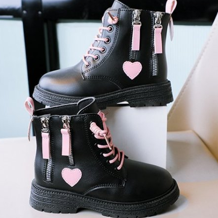 Kids Black Boots for girls Double zip Casual boots for baby girl Leather Boots School Black Shoes