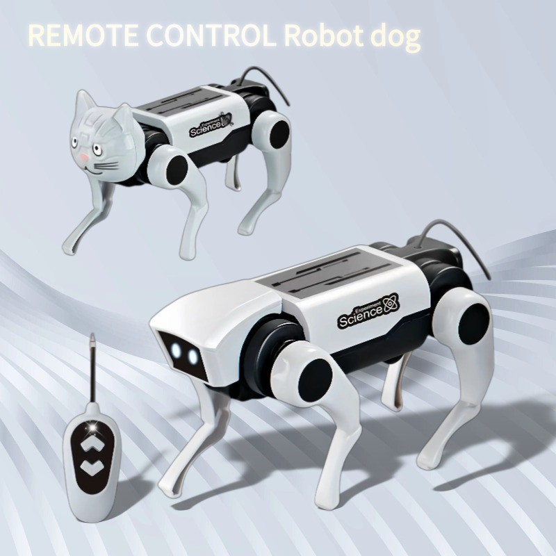 Kids Robot toys Electric Remote Control Robot Dog DIY Installation Dog Cat 2 Heads Kids Birthday Gifts Electronic Pets