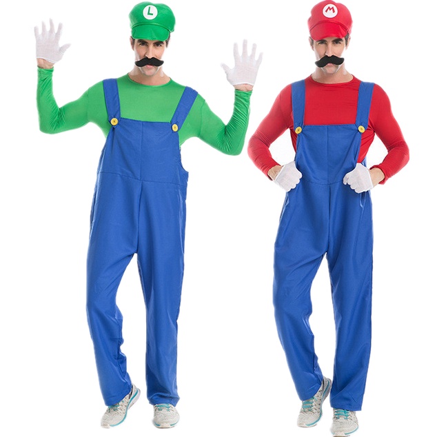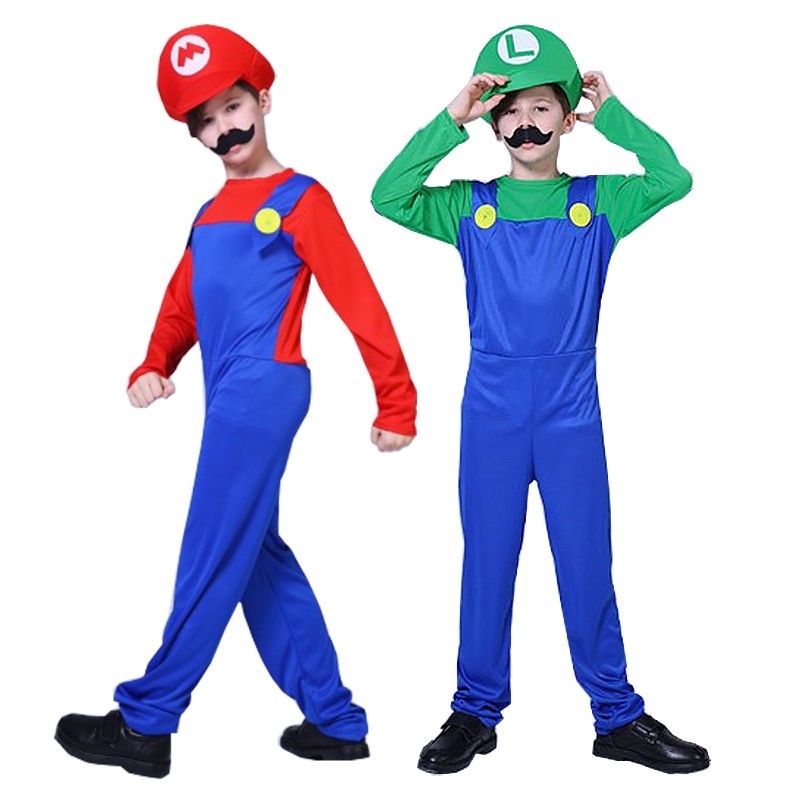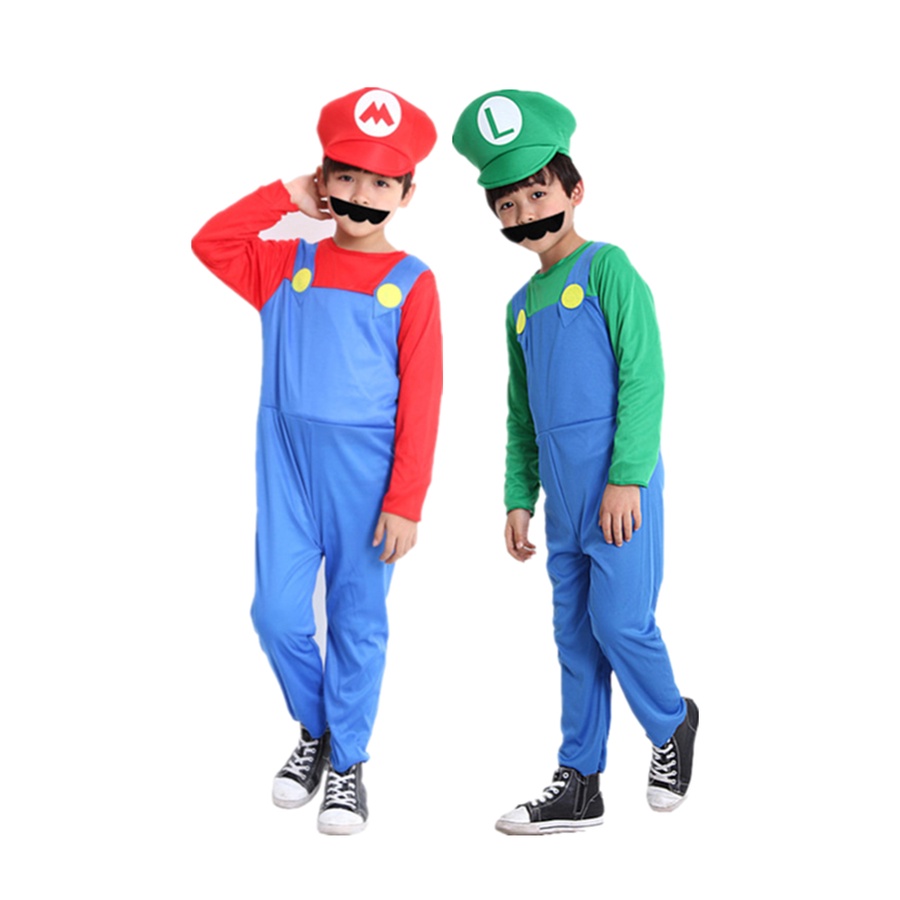 Kids Super Mario Bros Costume Kids Adult Parent-Child Clothing Cosplay Mario Luigi Red Green Jumpsuit Shopping Mall Sportswear