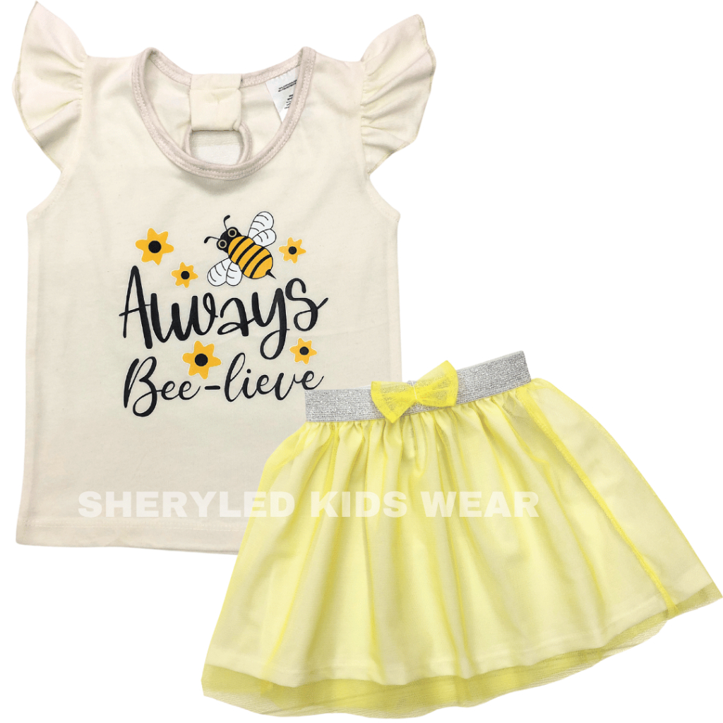 Kids Terno 1-3 Years Old Girls Cotton Blouse Skirt Set Girl Clothes Bee