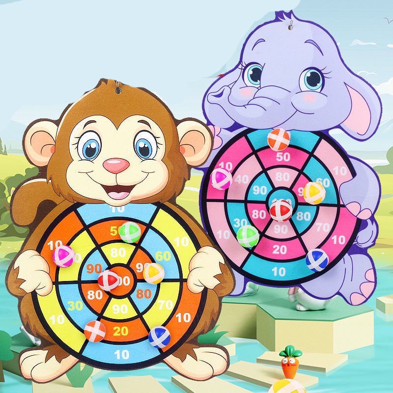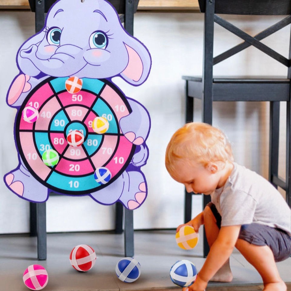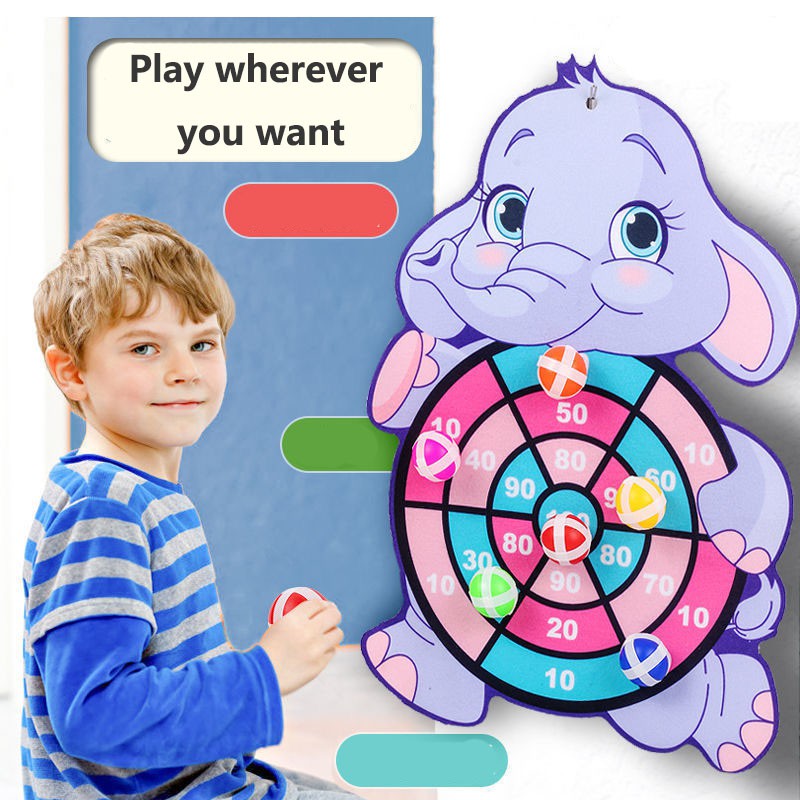 Kids Throwing Sticky Ball Dart Board Educational Game Toy Fabric Puzzle Children Baby Elephant Target Dart Sports Accessories