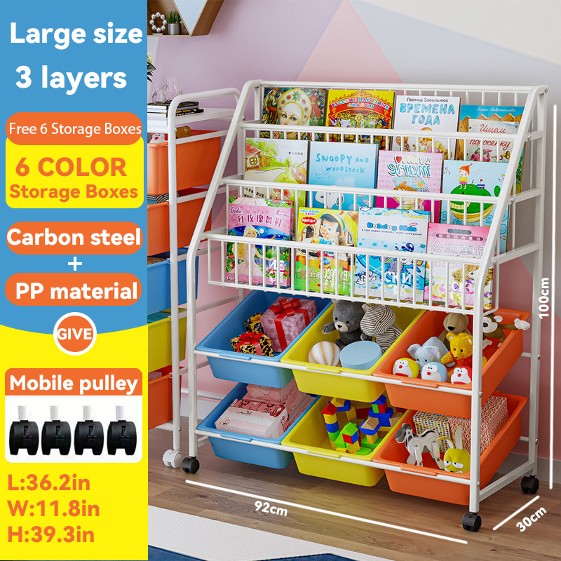 Multifunctional Kids Toy & Book Storage Rack Organizer - Children's Bookshelf and Toy Display Stand