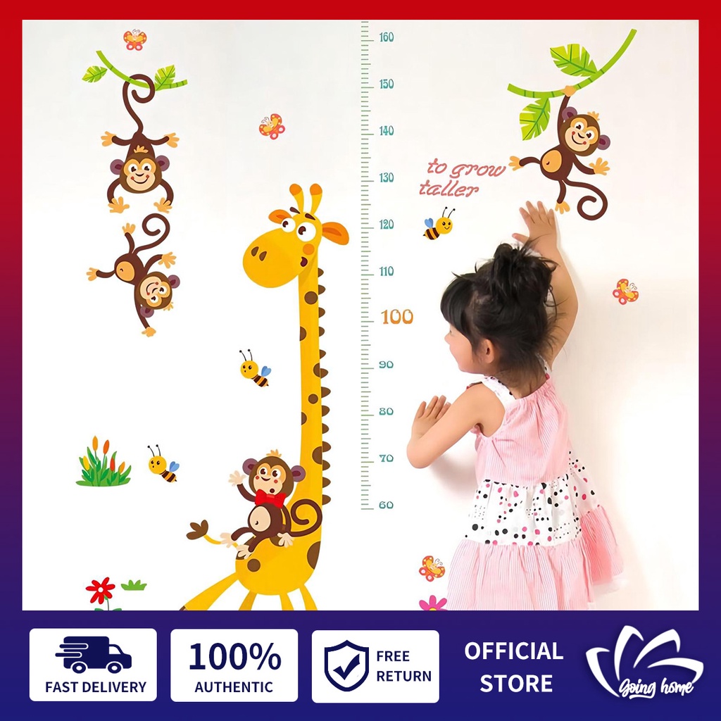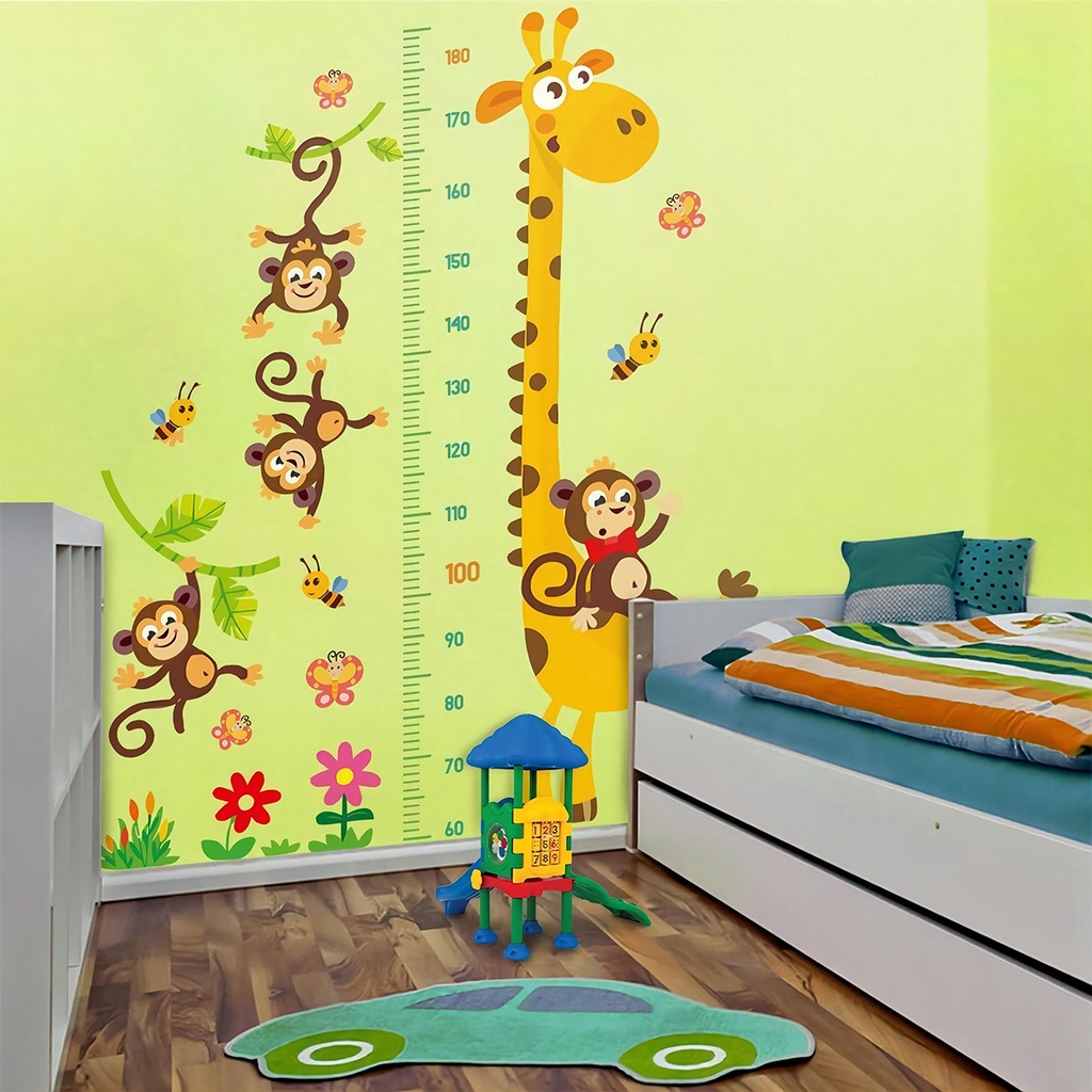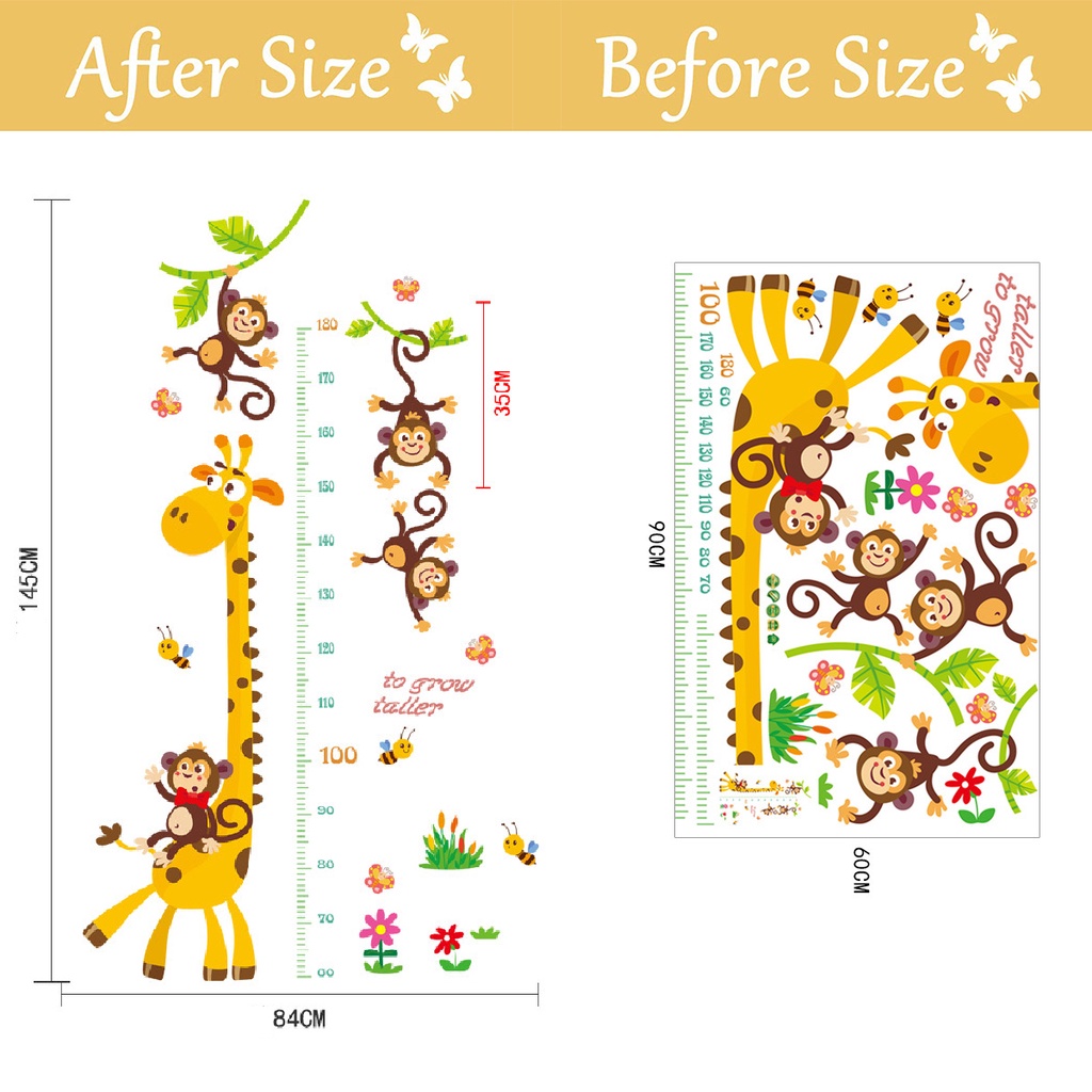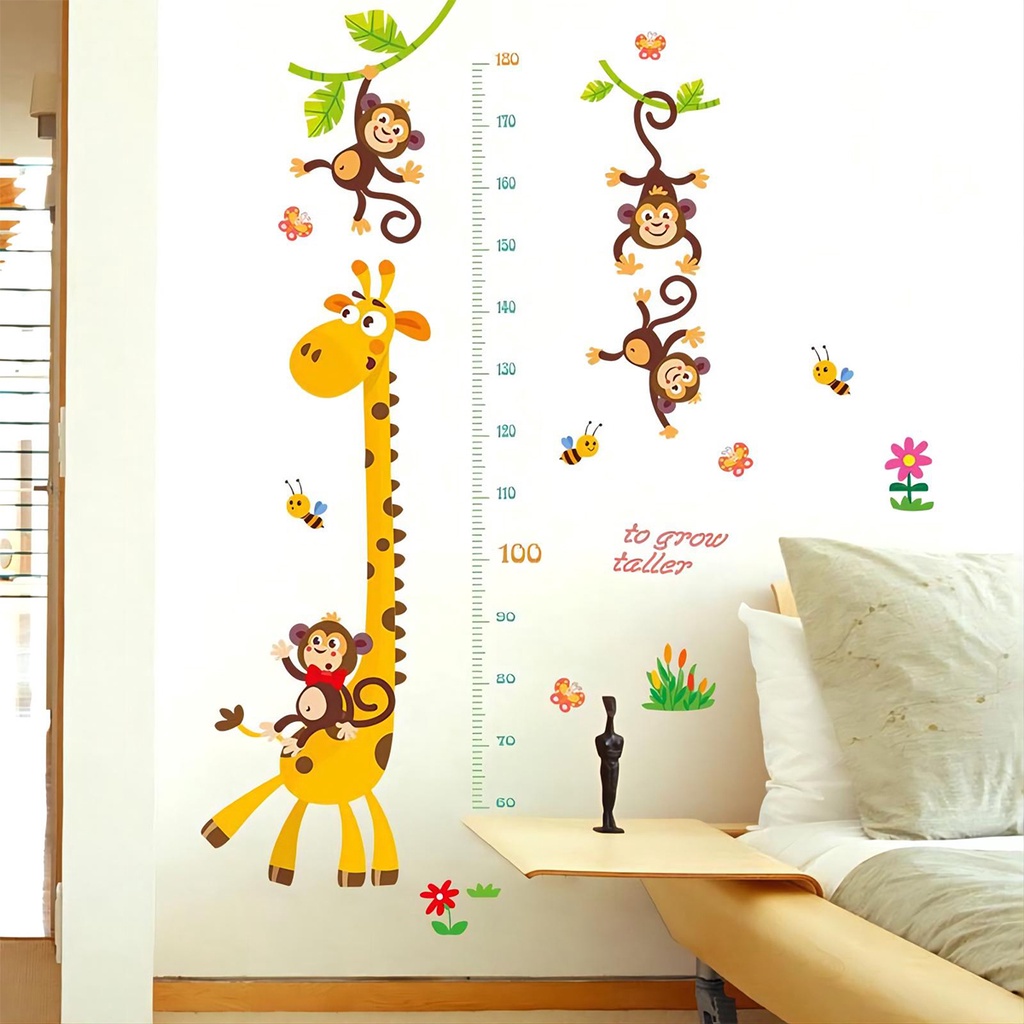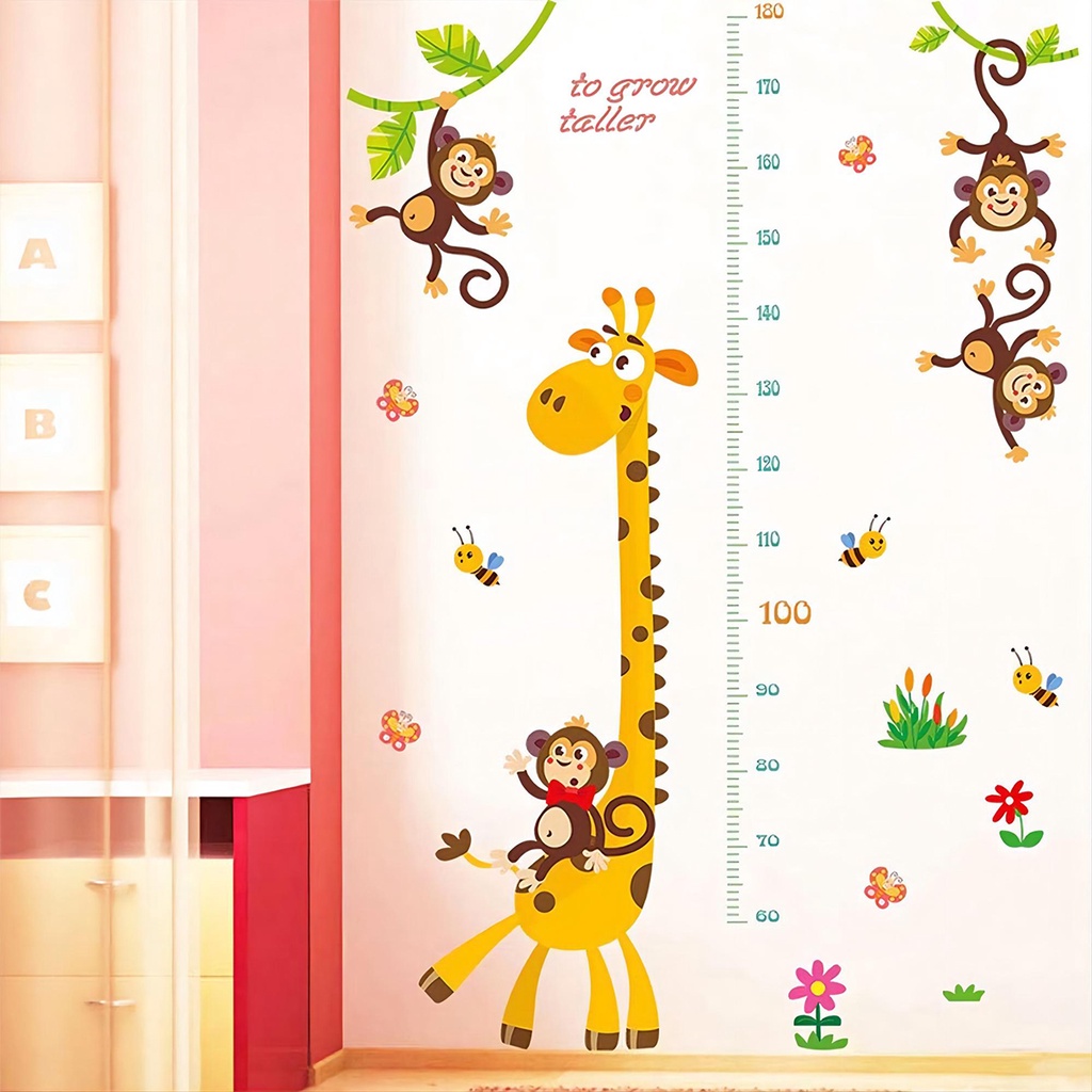 Kids Wall Decal Height chart Wall Sticker Cartoon Animals Monkey Giraffe Desgin for Wall Decoration