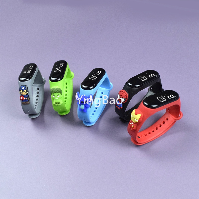 Kids Watch LED Cartoon Fashion Electronic Watch Doll Children for Boy Gift Swimming Waterproof Watch Captain America Iron Man Spiderman Hulk Bat Stitch Watch