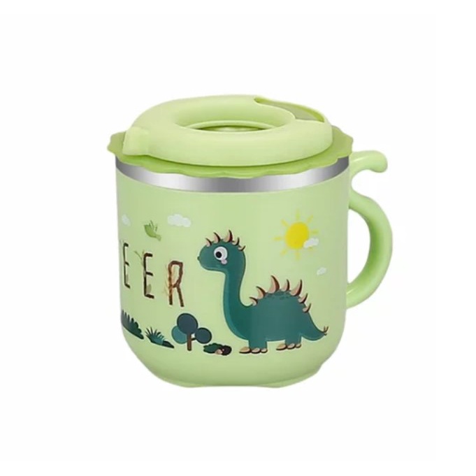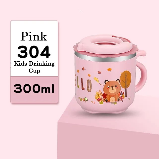 Kids Water Cup Cute Cartoon with Lid Cover 304 Stainless Steel Cup 300ml Children Drinking Straw Cup