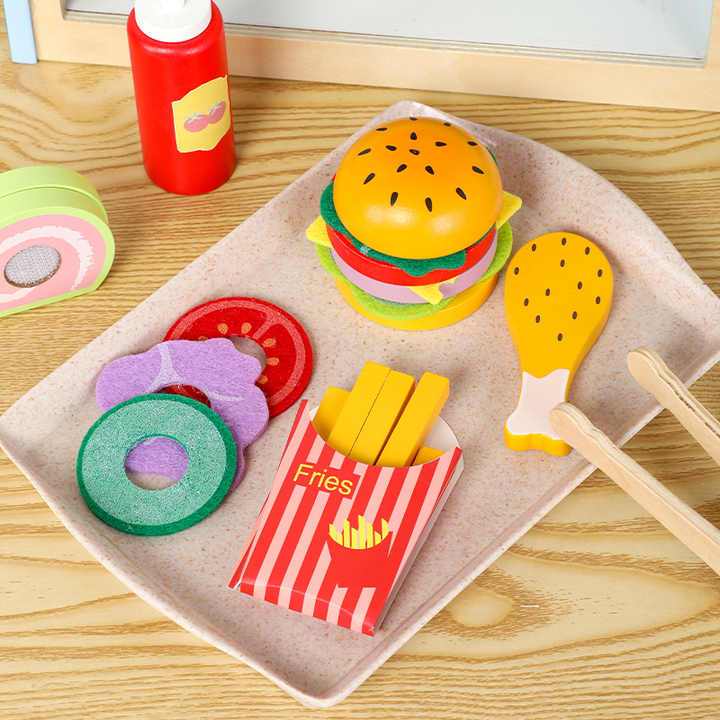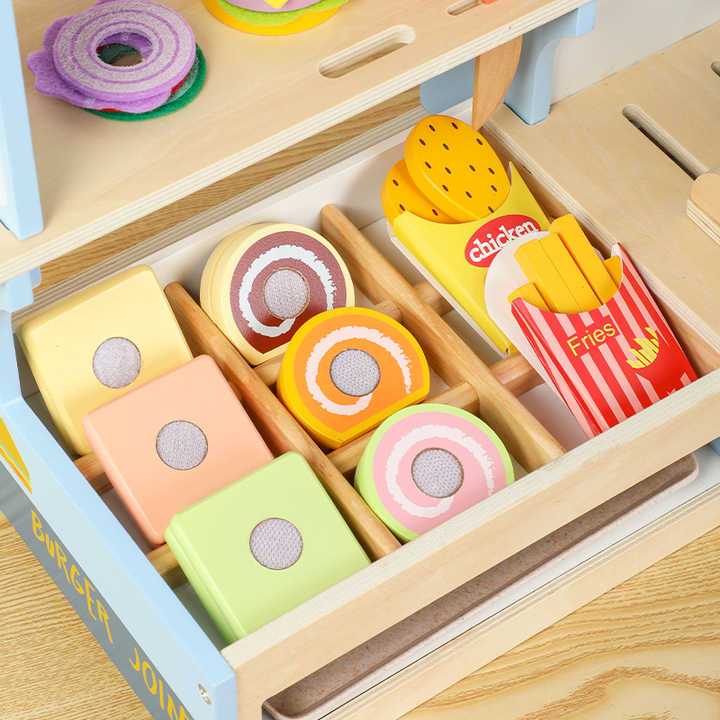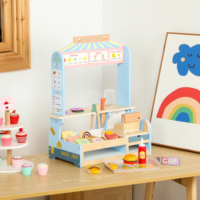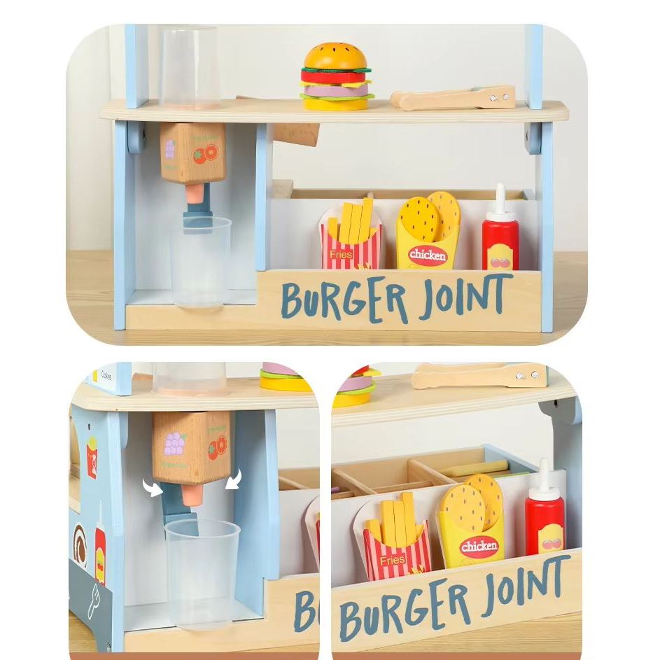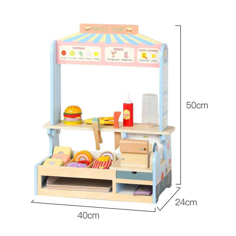 Kids Wooden BURGER SHOP Fruit Supermarket Grocery Stand Booth Pretend Play Boy Girl Gift Toy Set