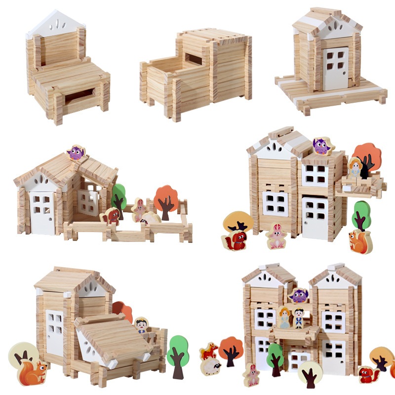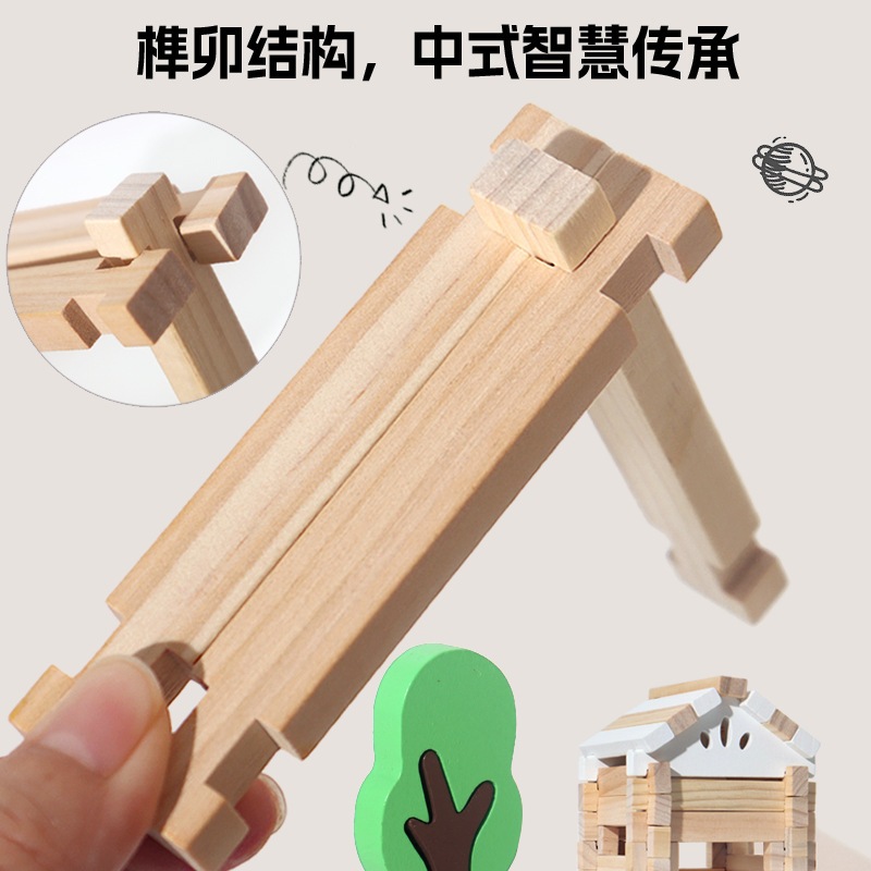 Kids Wooden Home Block - Wooden Model Kit | Mortise and Tenon Building Blocks | House Building Toys, Toy Building Blocks, Intelligent Wood Construction Set for Kids Boys Girls