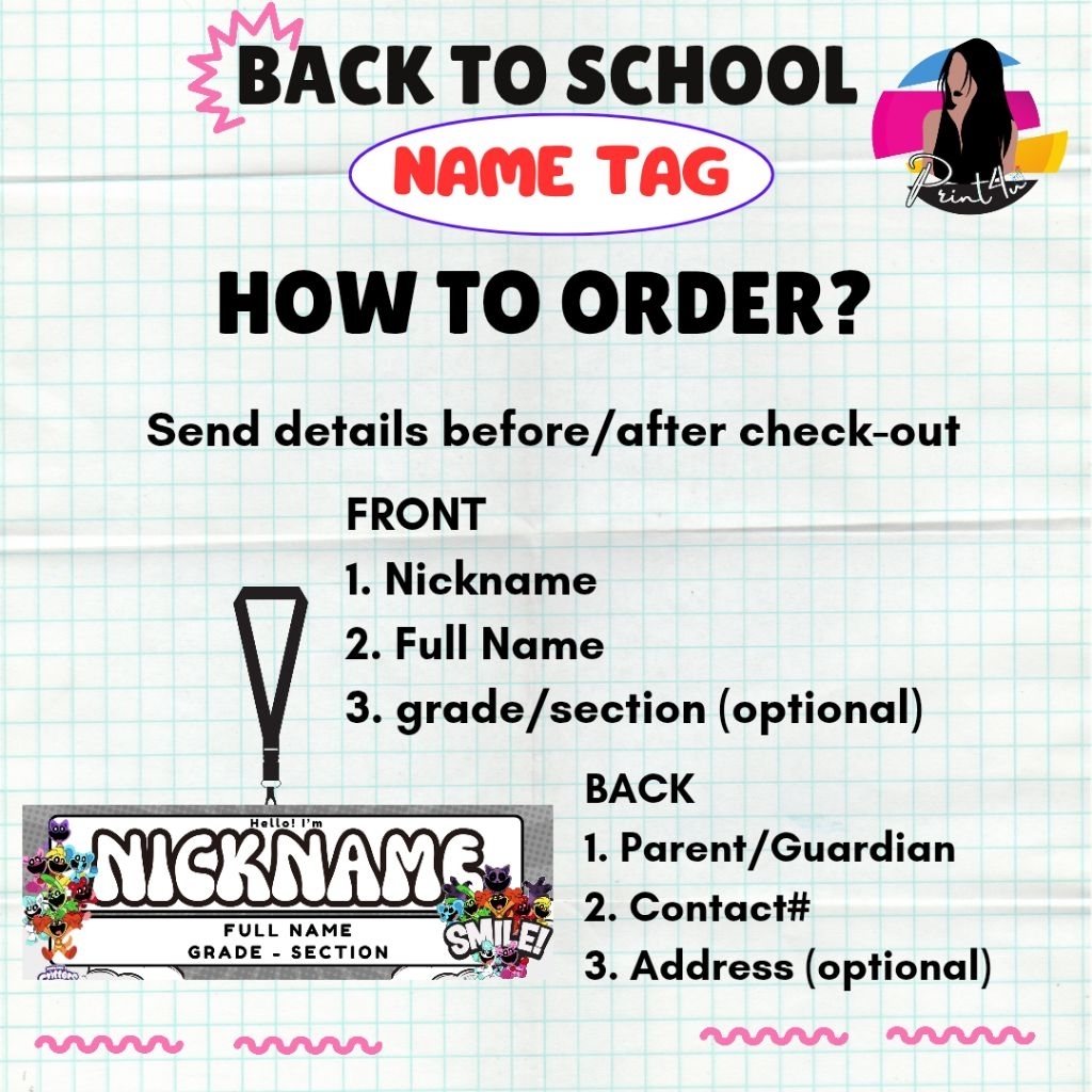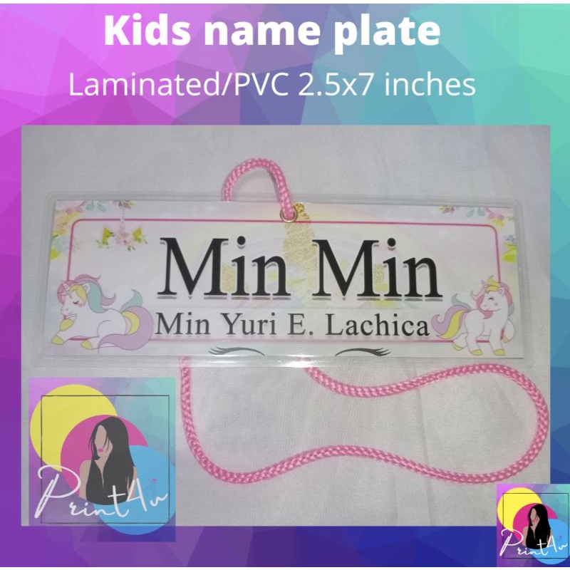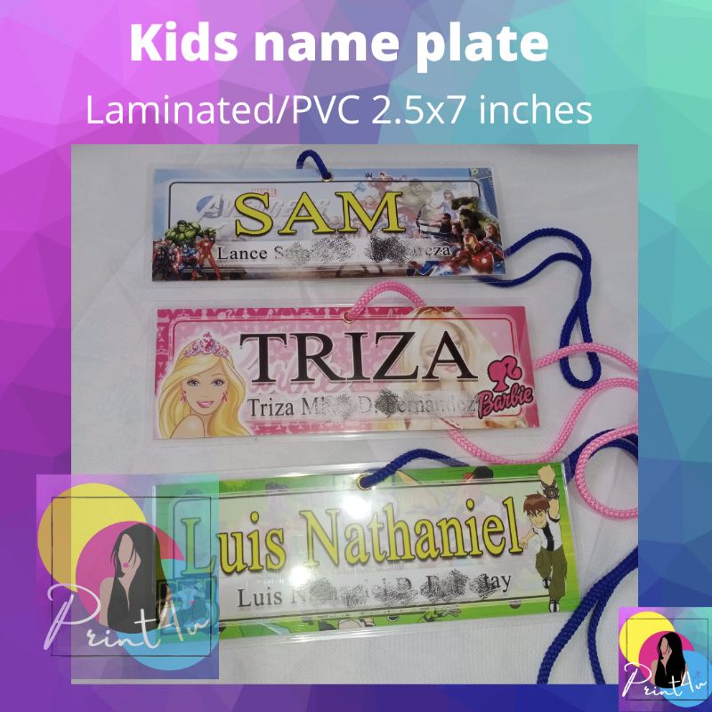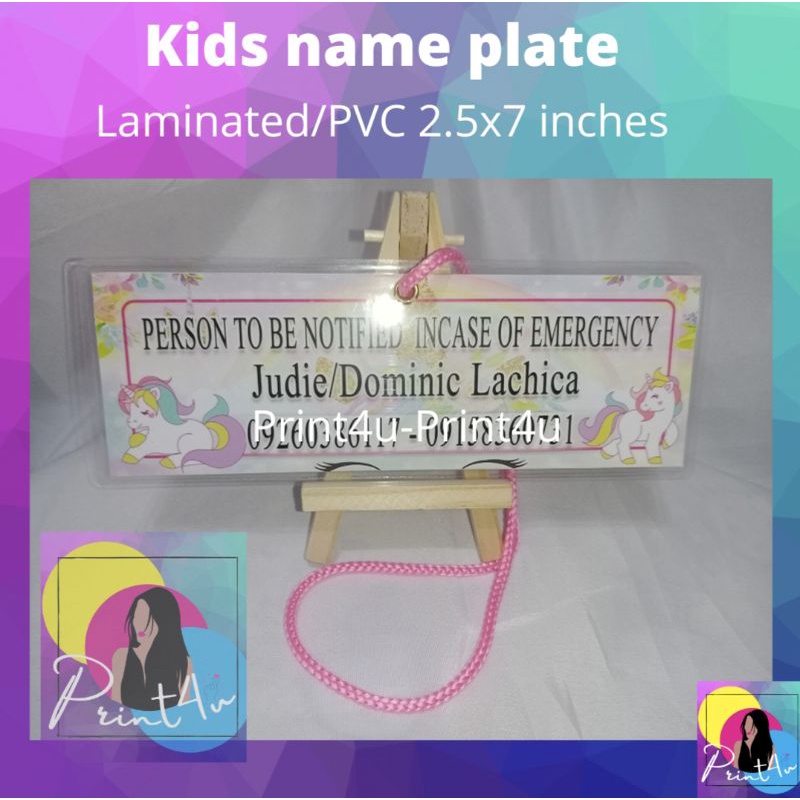 Kids name plate laminated waterproof nameplate name tag for school