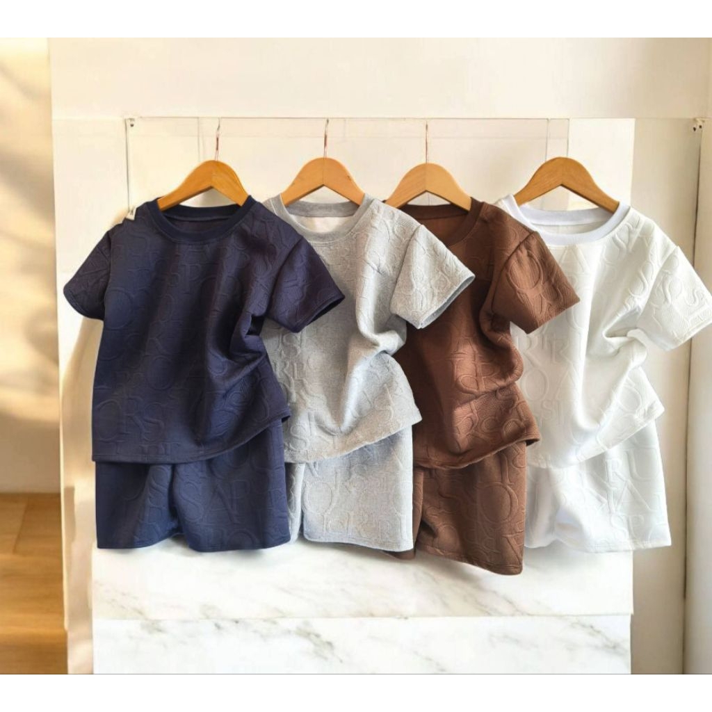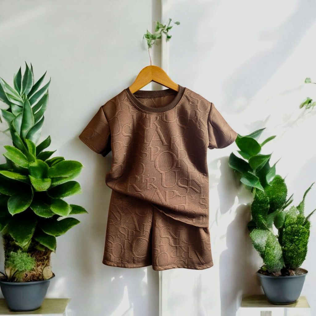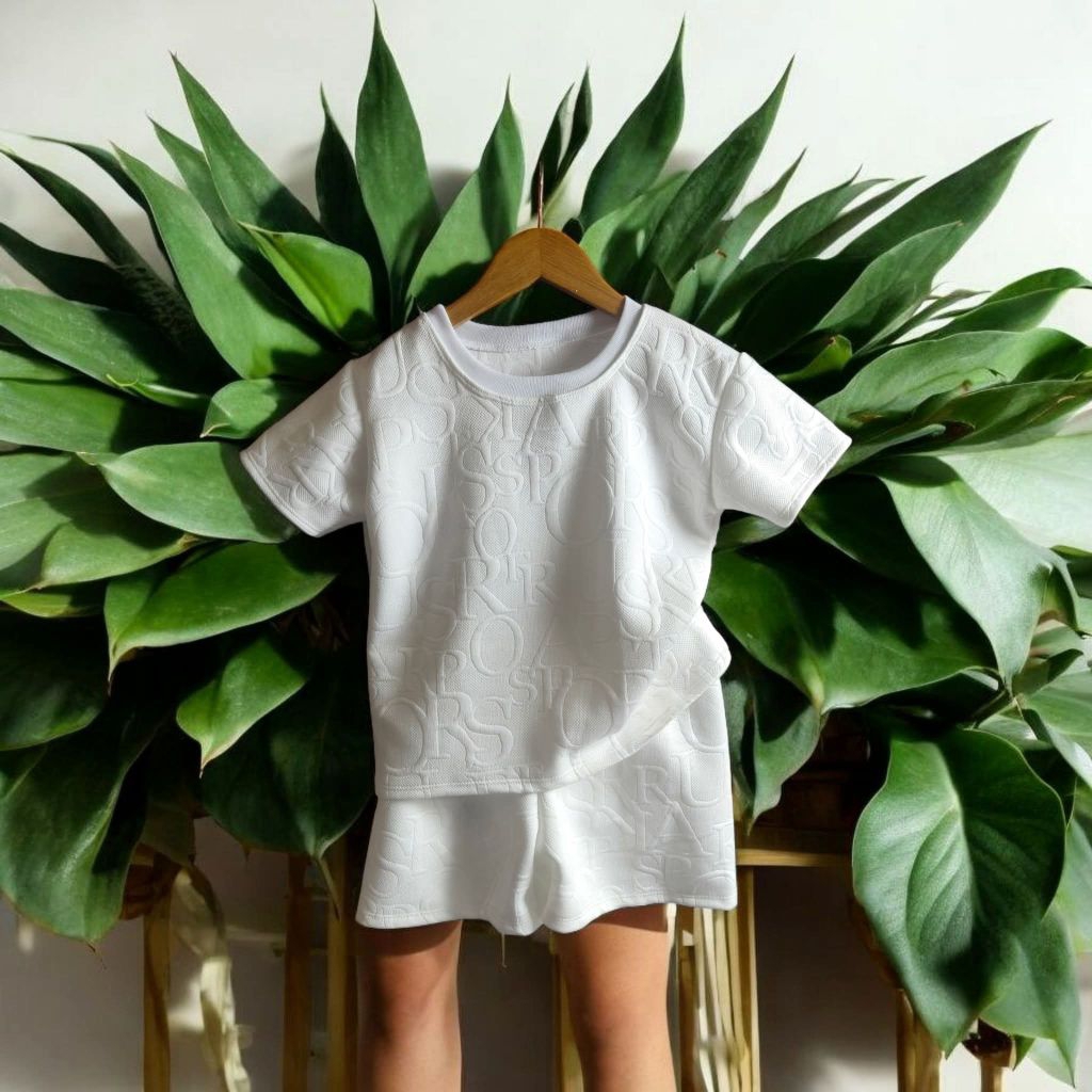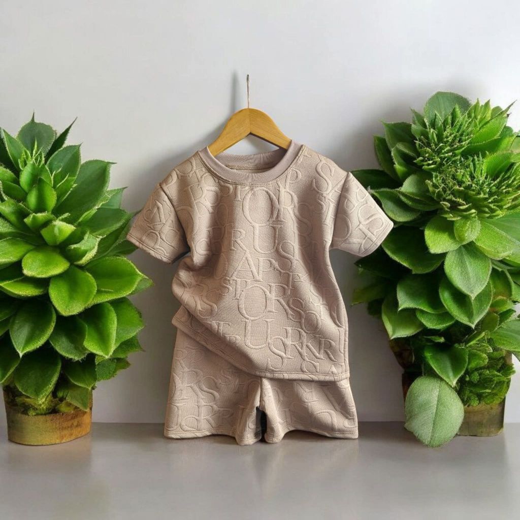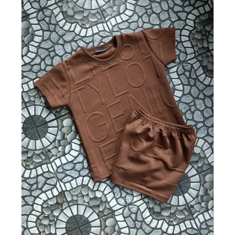 Kids terno luxury design English print embossed terno 5-8yrs old unisex