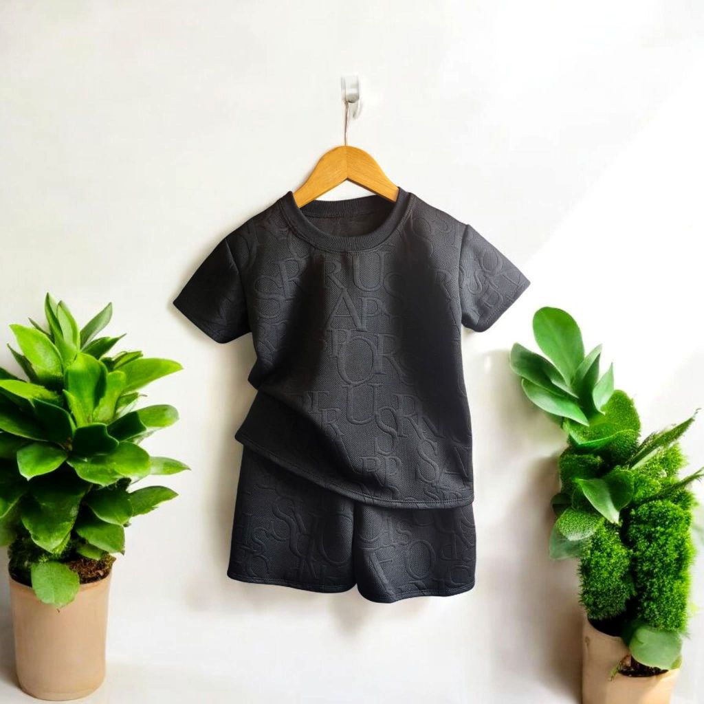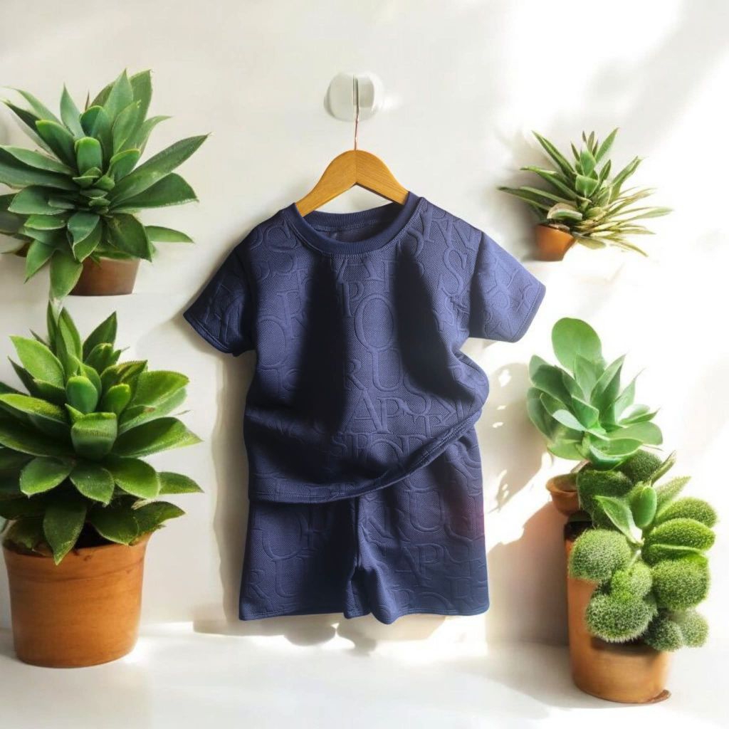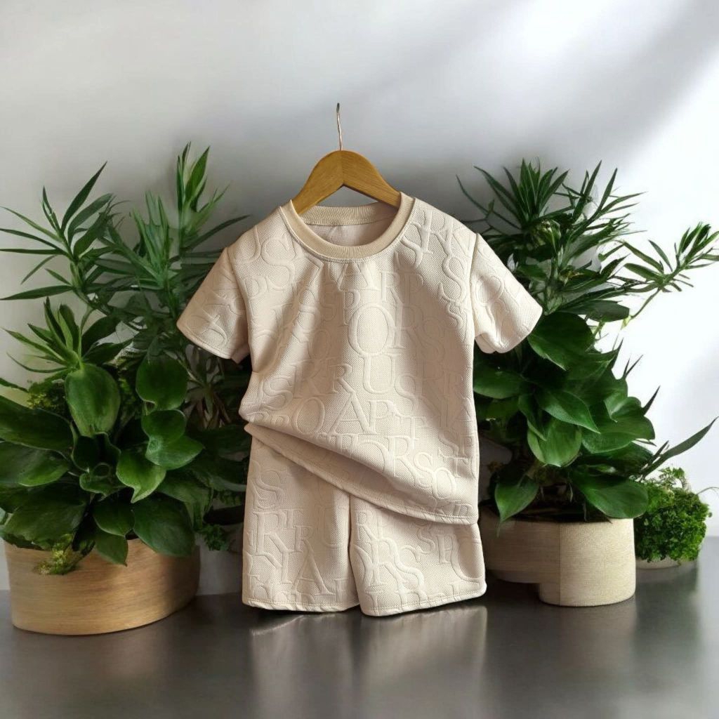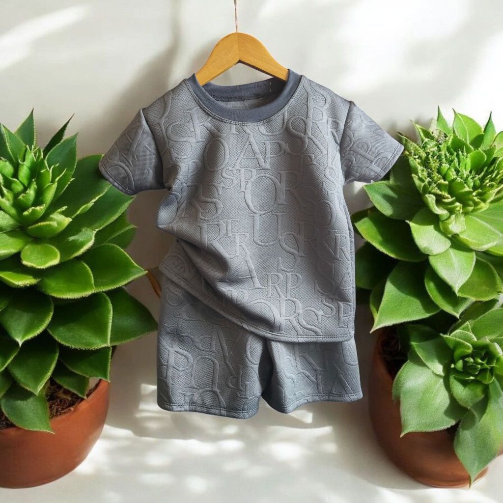 Kids terno luxury design English print embossed terno 5-8yrs old unisex