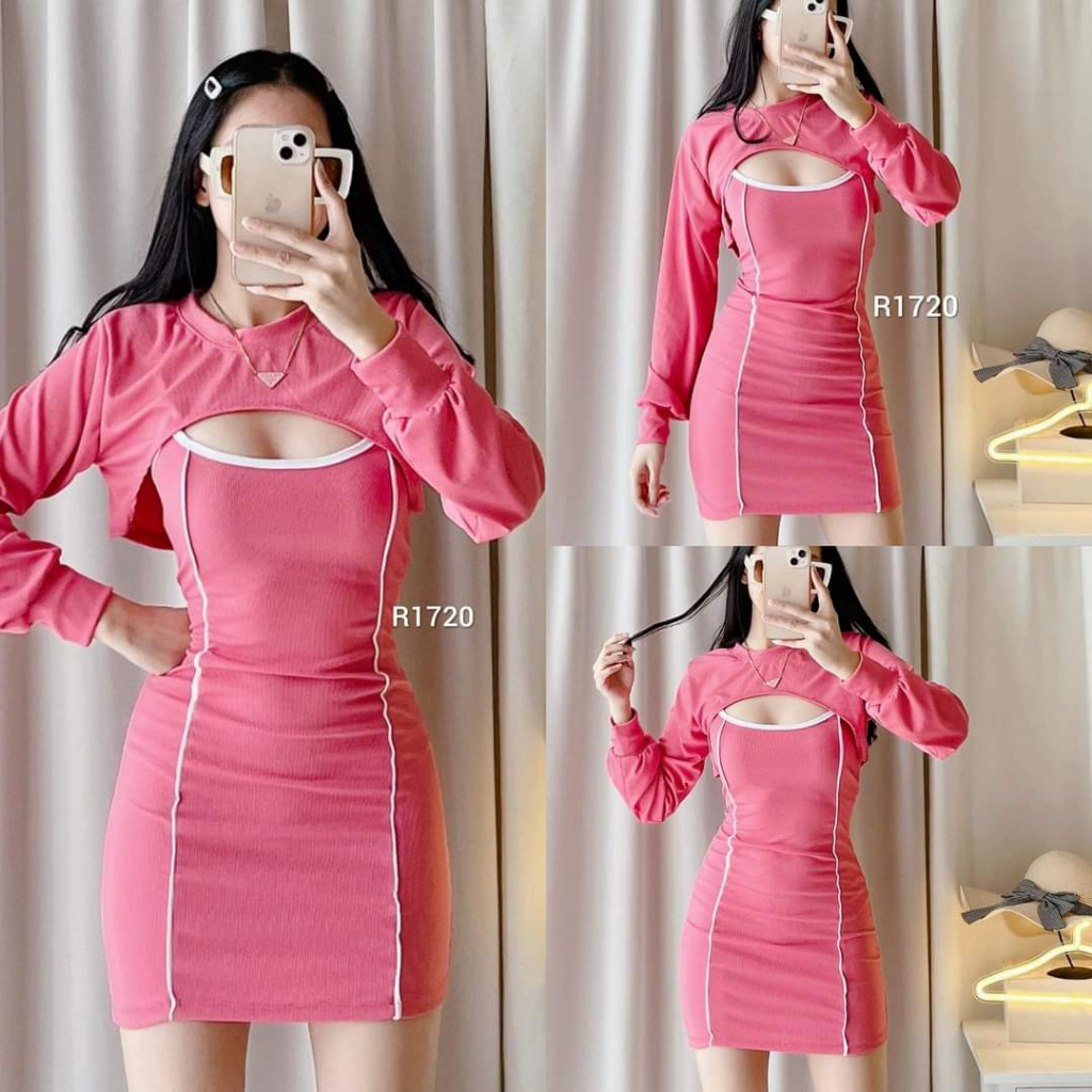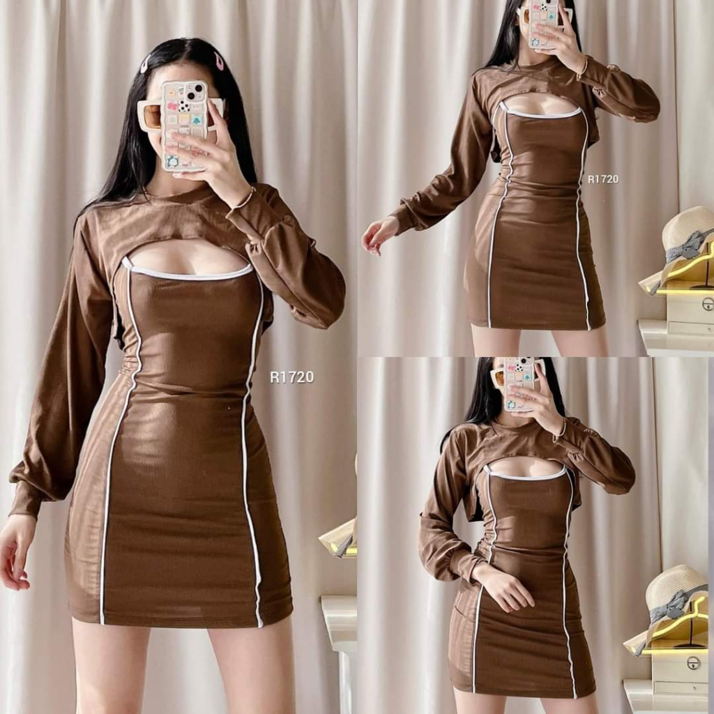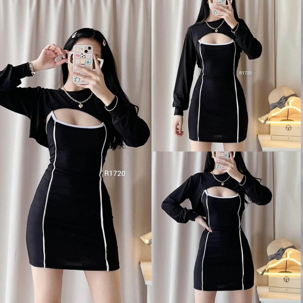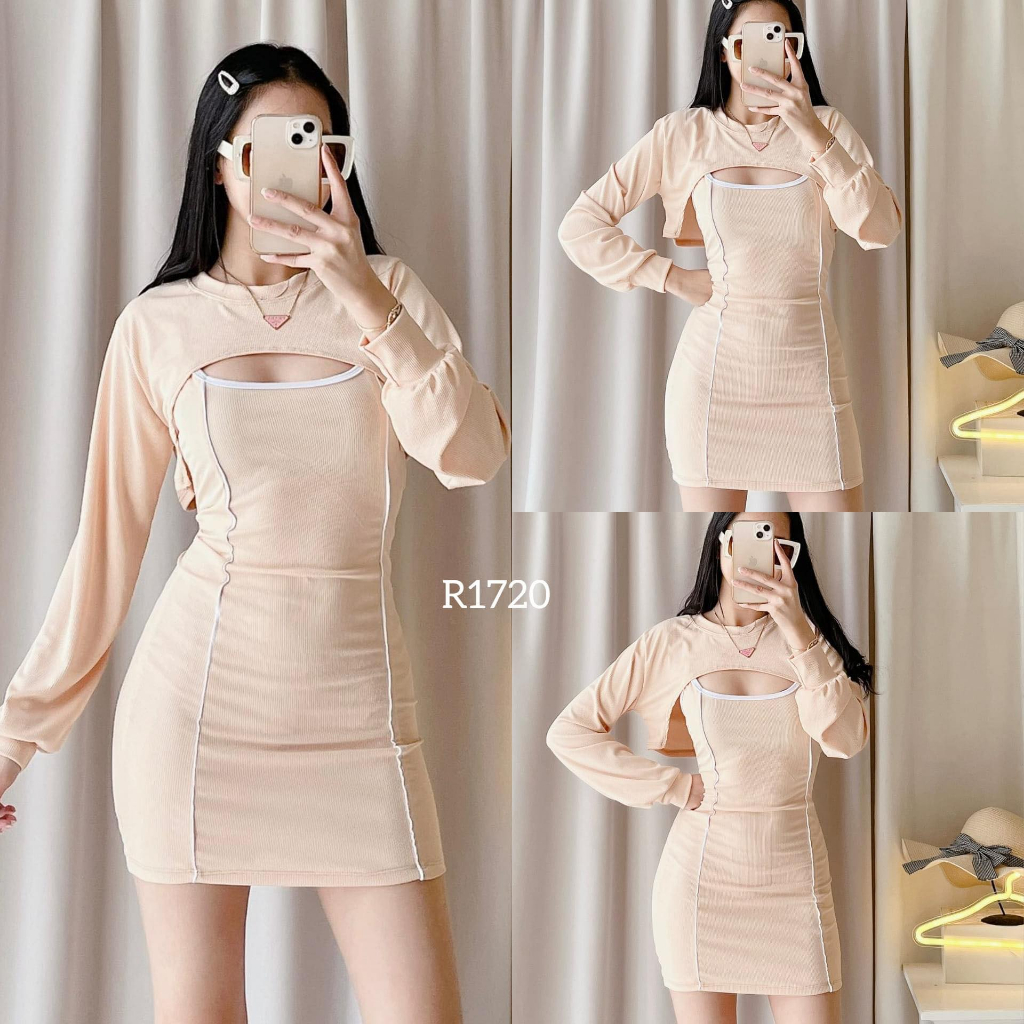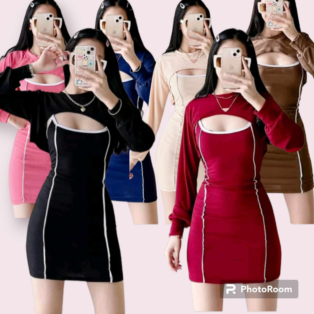 Kimmy Peek a boo Longsleeves 2 n 1 Knitted Bodycon Dress