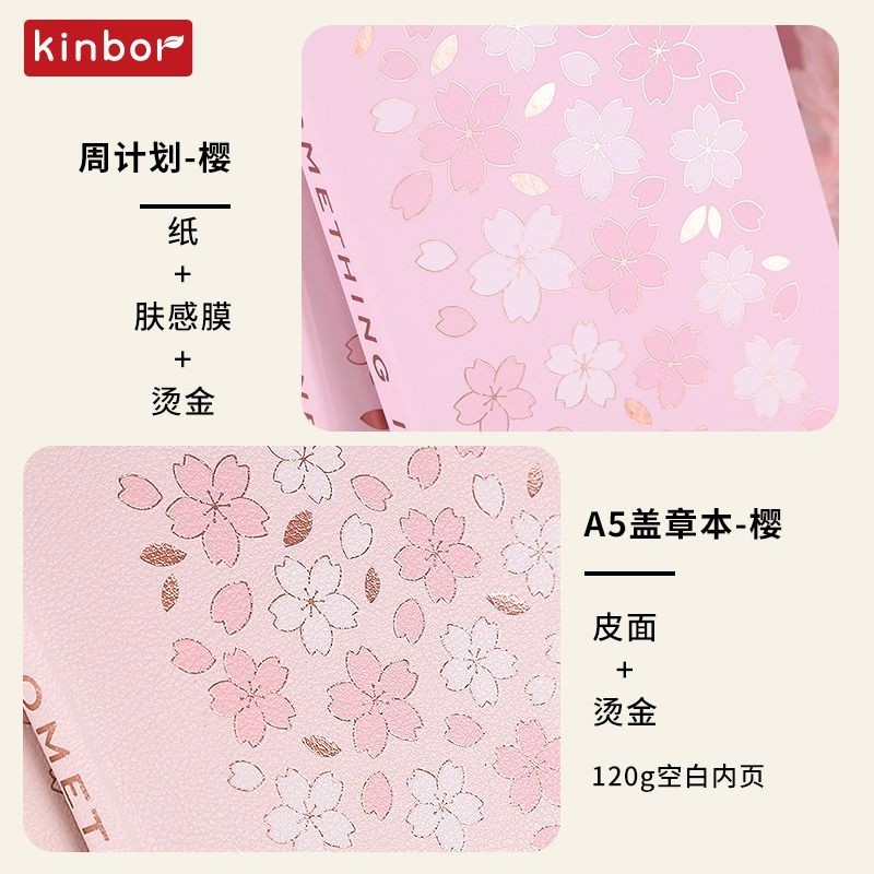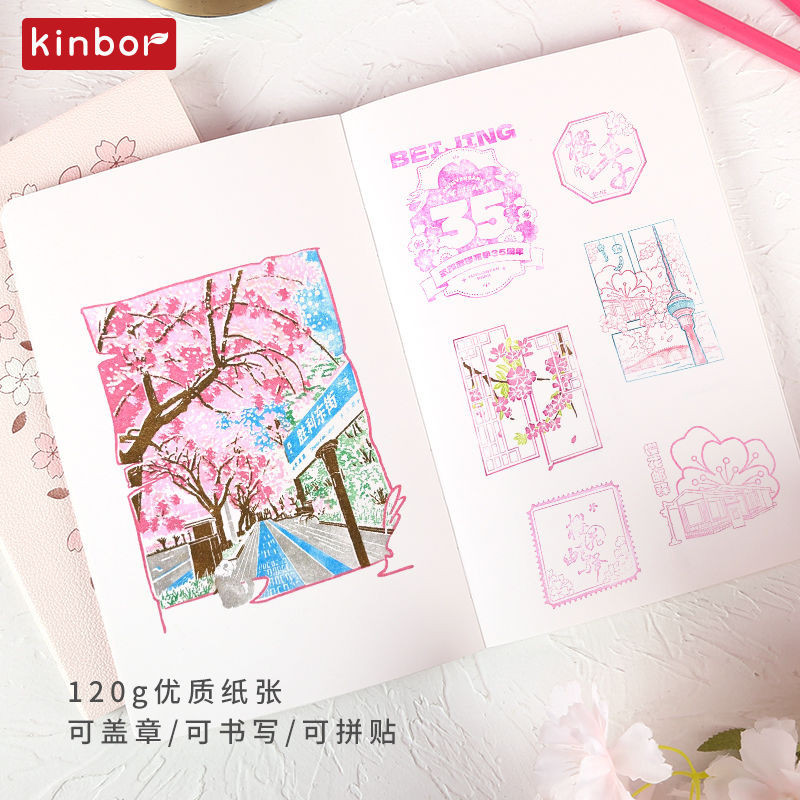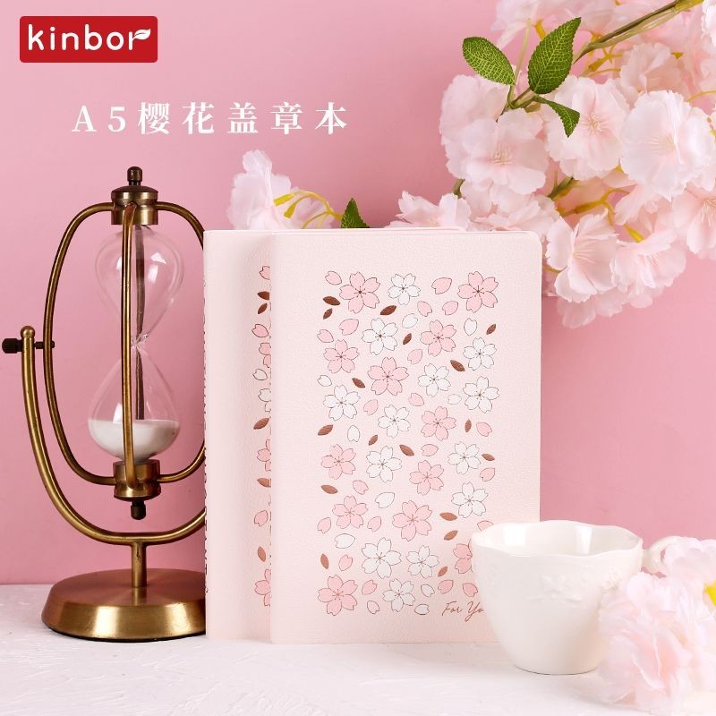 Kinbor A5 Cherry Blossom Tourism Check in Stamp Blank Inner Page Cultural and Creative Scenic Area Check in Book Self Filled Weekly Plan