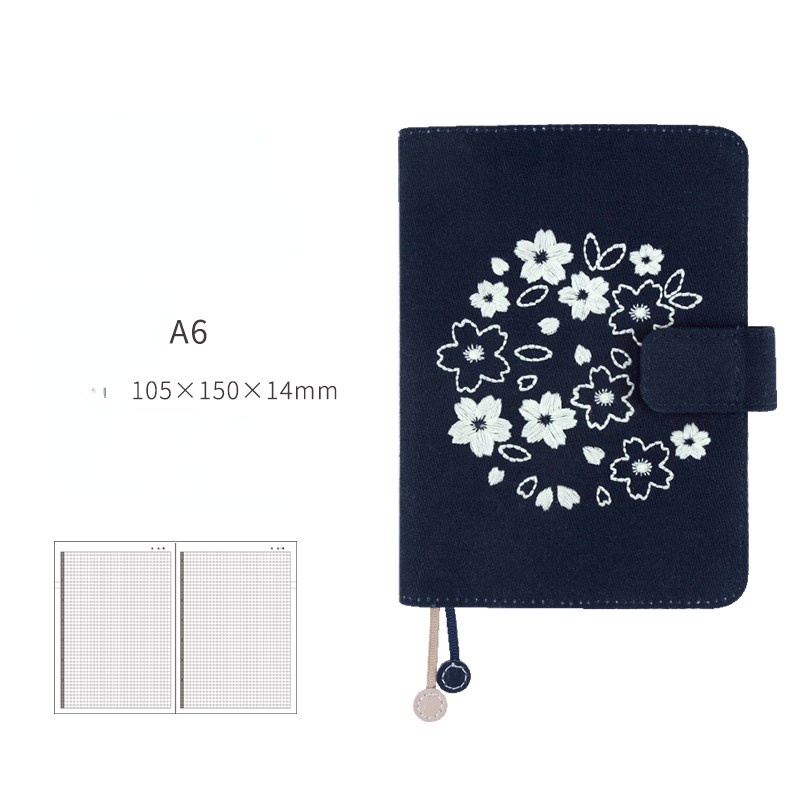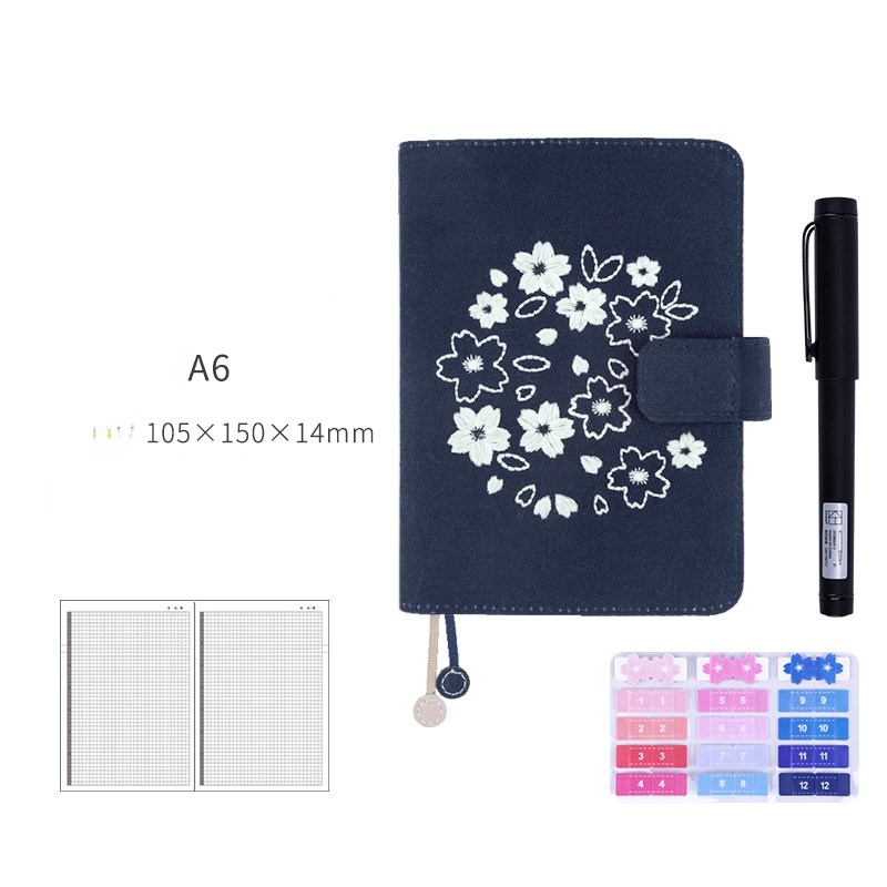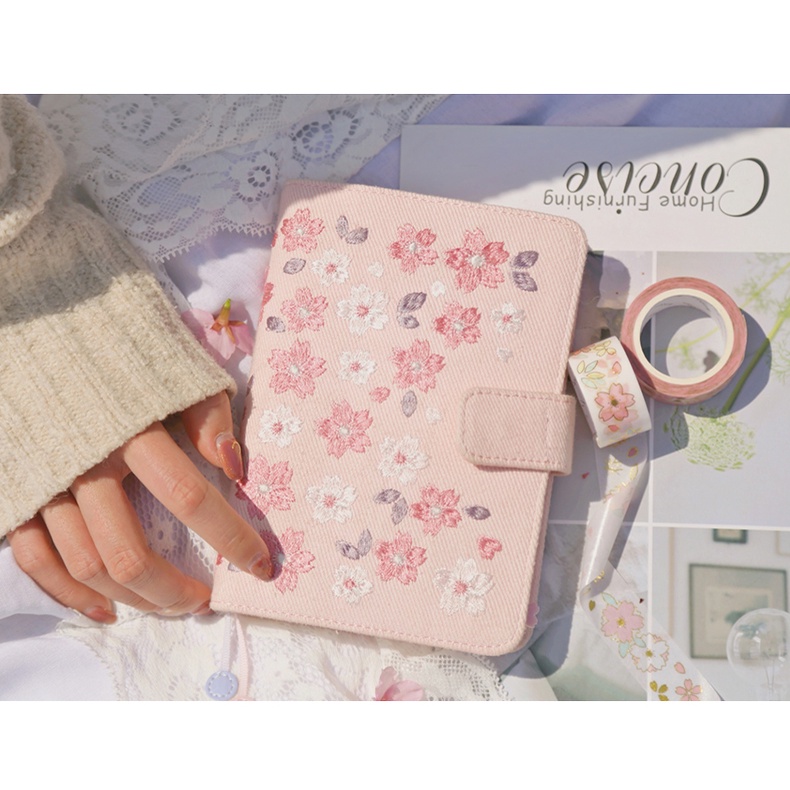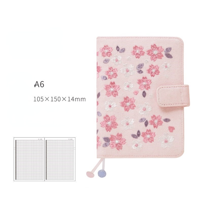 Kinbor Sakura Notebook Sets Retro Embroidery A6 Handbook Calendar Schedule Book Daily Planner Organizer Bullet Pink Journal