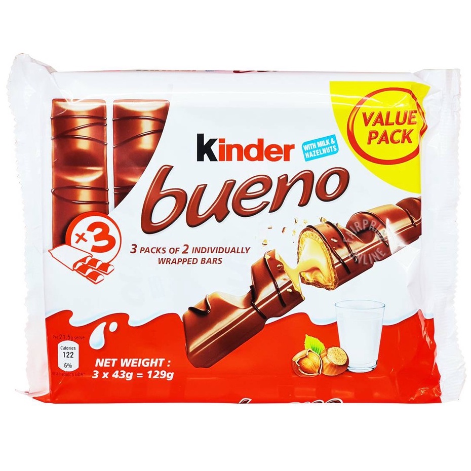 Kinder Bueno (Chocolate/White Chocolate) T6 Flow Pack 129G/117G Plastic Made in Poland