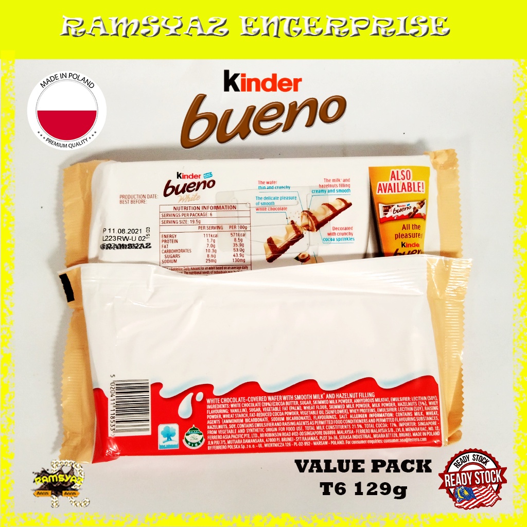 Kinder Bueno White Chocolate T6 Flow Pack 129G Made in Poland Coklat Kinder