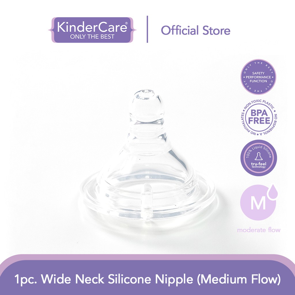 KinderCare Wide Neck Silicone Nipple – Medium Flow (1pc), BPA-Free, 100% Liquid Silicone