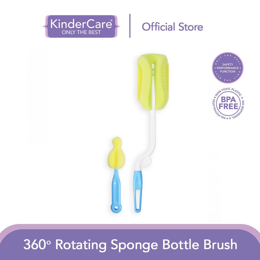 KinderCare 360° Rotating Sponge Bottle Brush – All-Angle Cleaning, Soft Foam