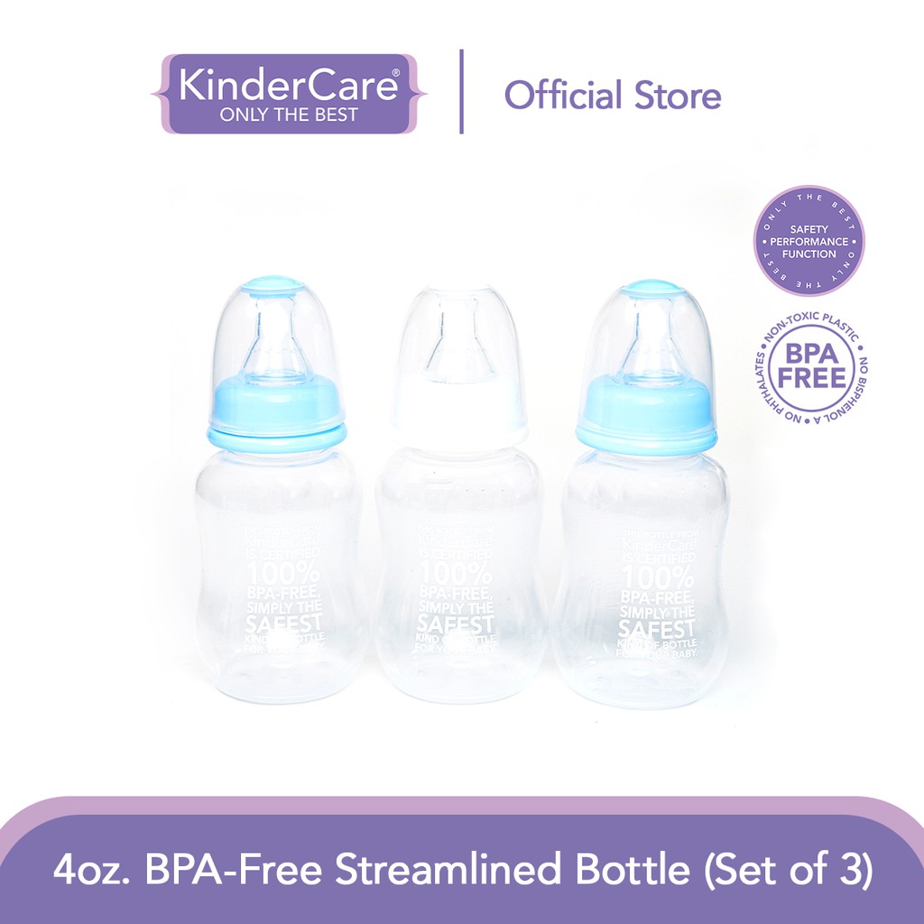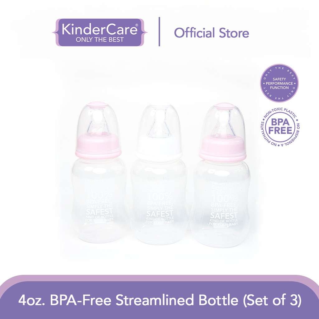 KinderCare 4oz (Set of 3) Streamlined Baby Bottle BPA-Free, Anti-Colic, 100% Liquid Silicone Nipple