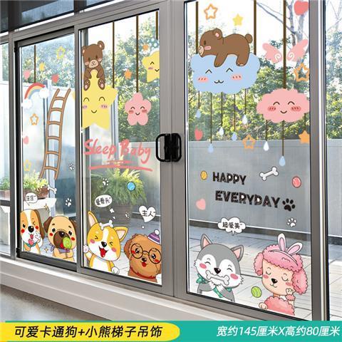 Kindergarten Ring Creation Window sticker Cartoon glass Door sticker Classroom Culture Theme Wall sticker Double-Sided Size Pattern Window glass sticker RUEE