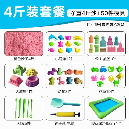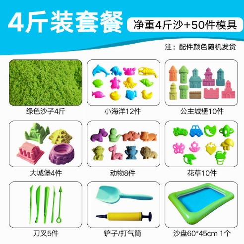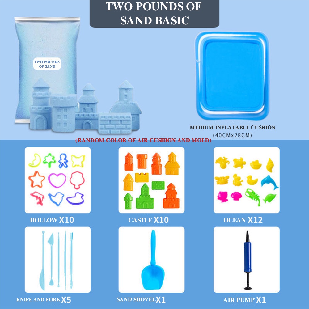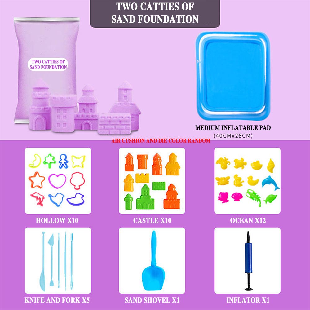 2kg Space Sand Toy Kinetic Motion Sand Playset with 50 pcs Molds Inflatable Pool Tools Non-Toxic