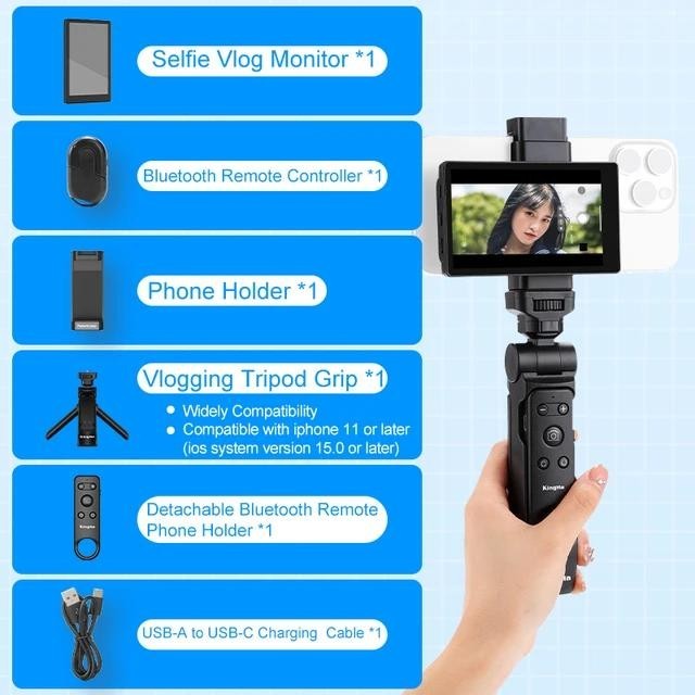 KingMa Vlog Selfie Monitor Screen Bracket for iPhone 15 14 13 Pro Max Smartphone Video Bluetooth remote control Phone Holder