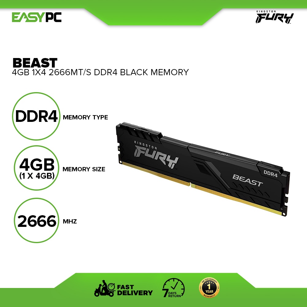 Kingston HyperX Fury 4GB | 8GB 2666Mhz |16GB(2X8)3200mhz | DDR4 | RAM | Memory | RGB | XMP- Ready