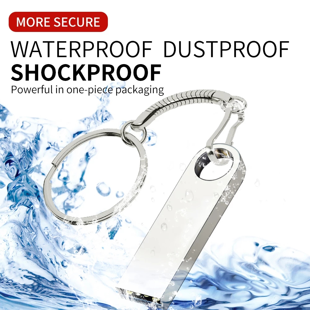 Silver Metal Flash Memory Driver, Support Customized Logo, 2TB, 1TB, 512GB, 256GB, 128GB, 64GB, 32GB Waterproof Pen Driver, with TYPE-C Adapter, Mobile Phone, Computer, TV