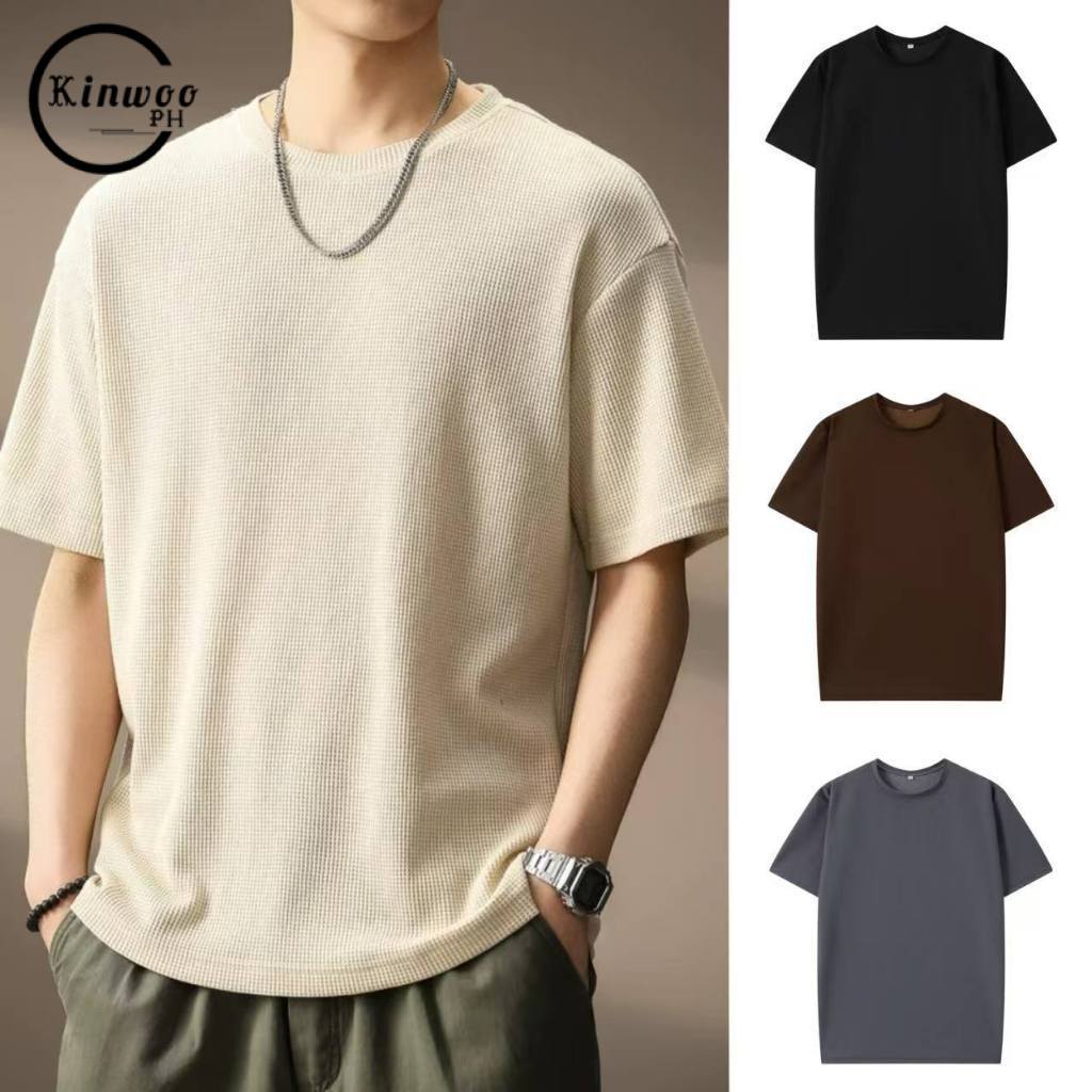 Kinwoo Men’s Mini Waffle Oversized T-Shirt | Crew Neck | Plain Design | Unisex Casual Wear T633