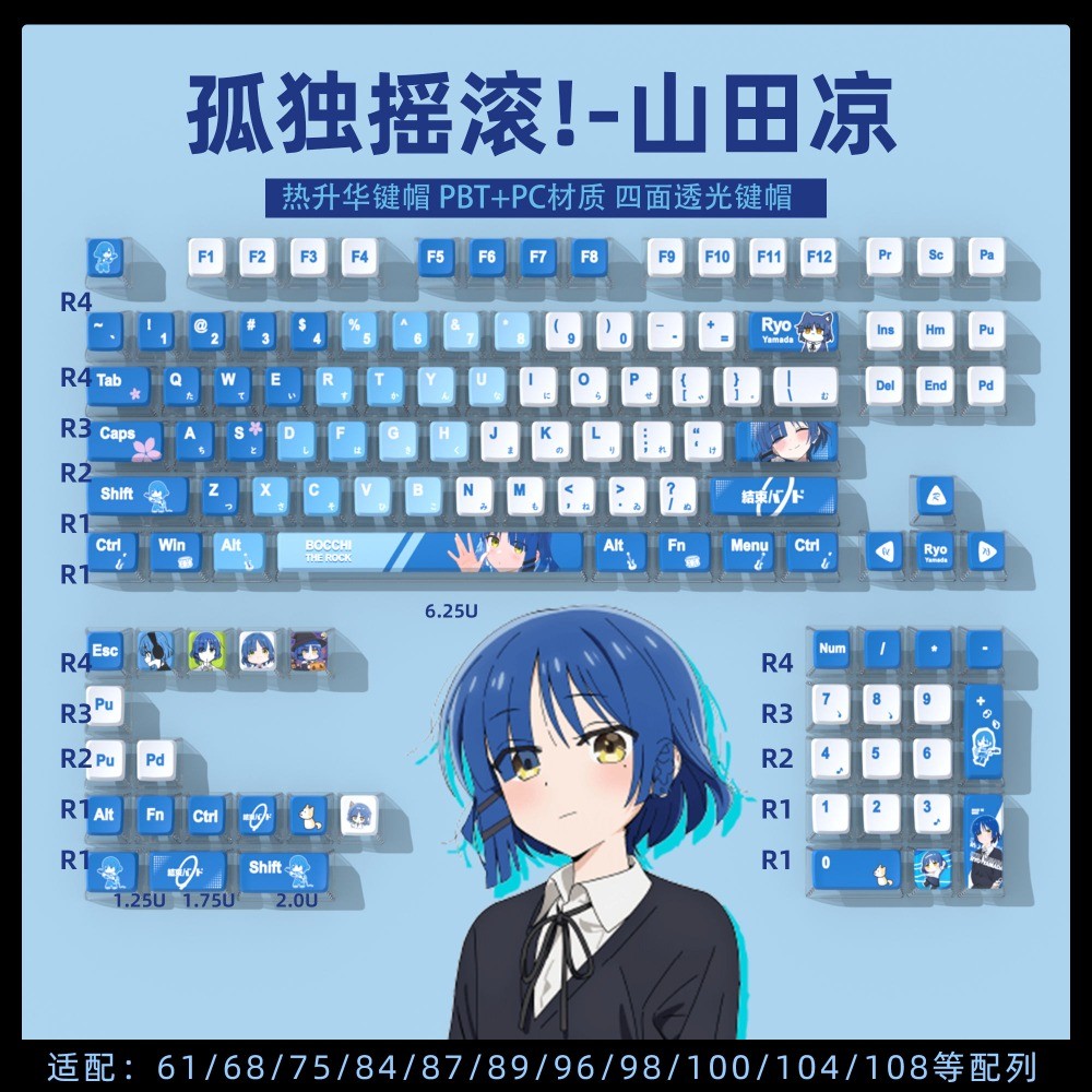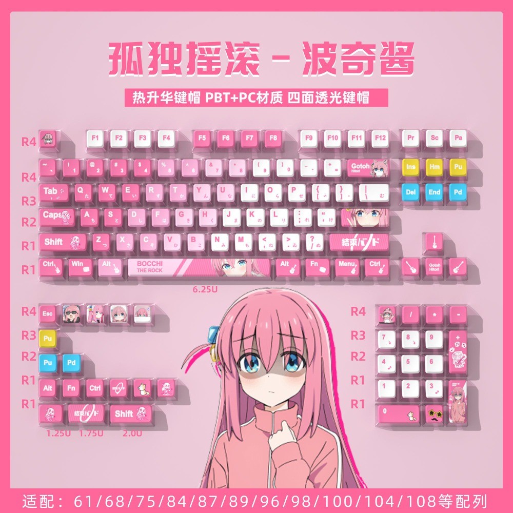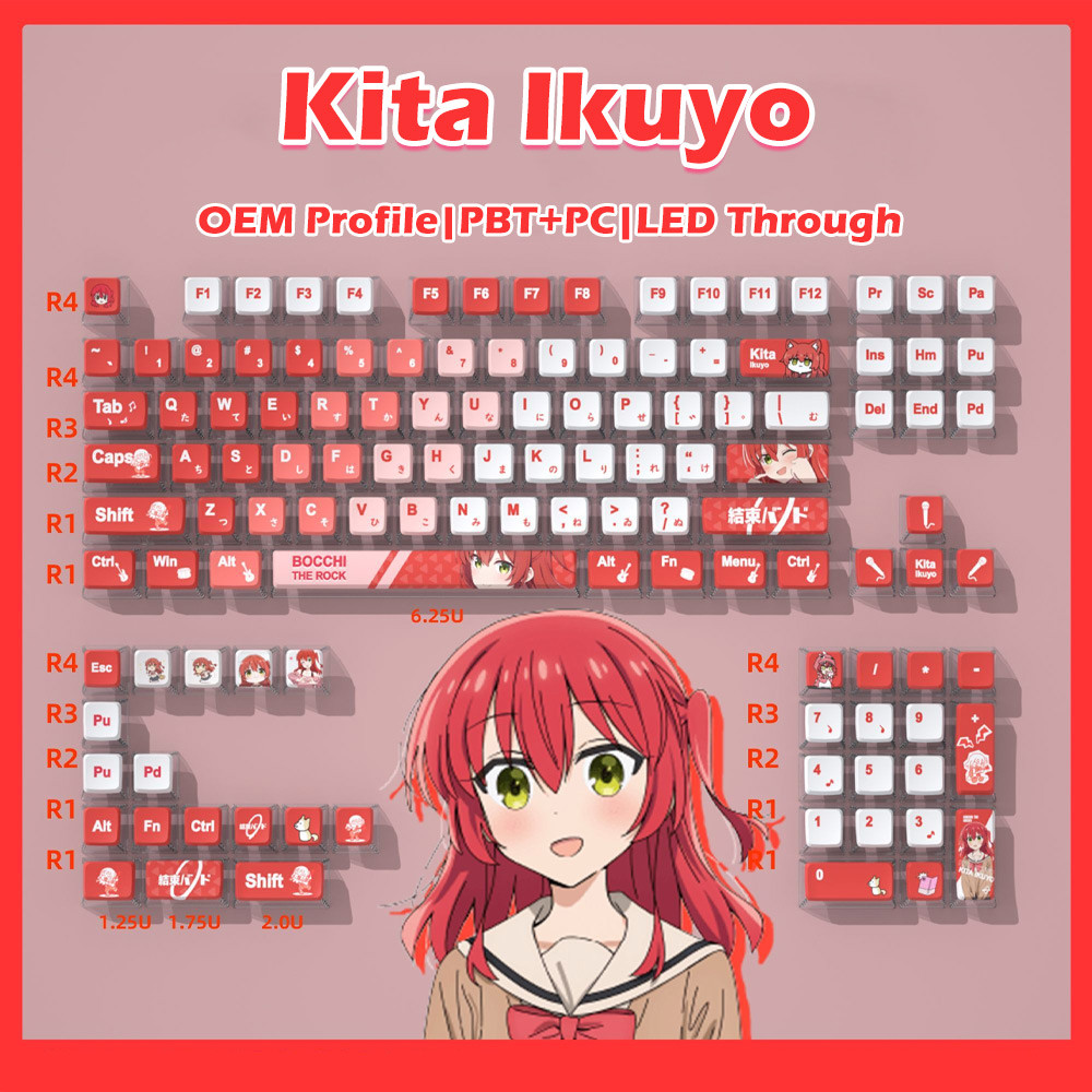 Kita Ikuyo Keycaps OEM Profile 120 Keys PBT PC Dye Sublimation Light Transmission Pudding Keycaps Wooting Aula Creative Cute Gotoh Hitori Yamada Ryo Anime Bocchi The Rock Keycaps
