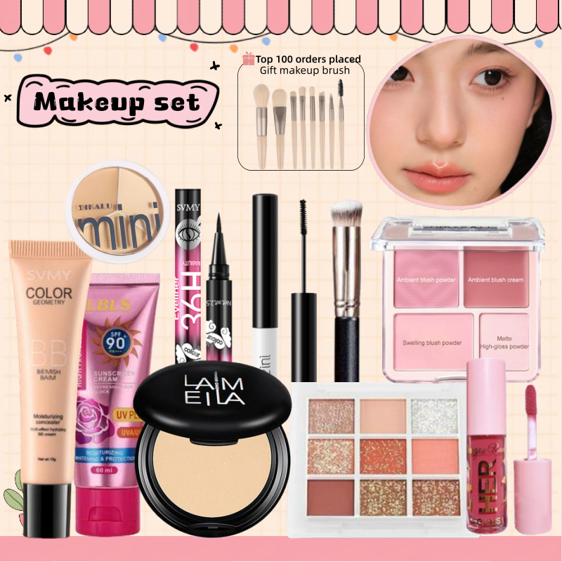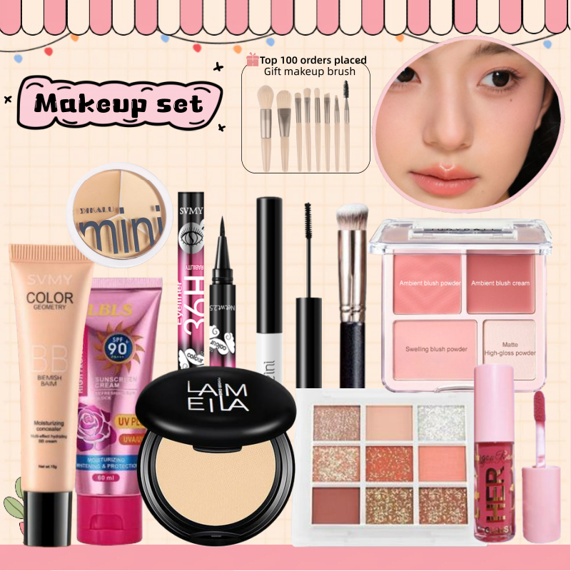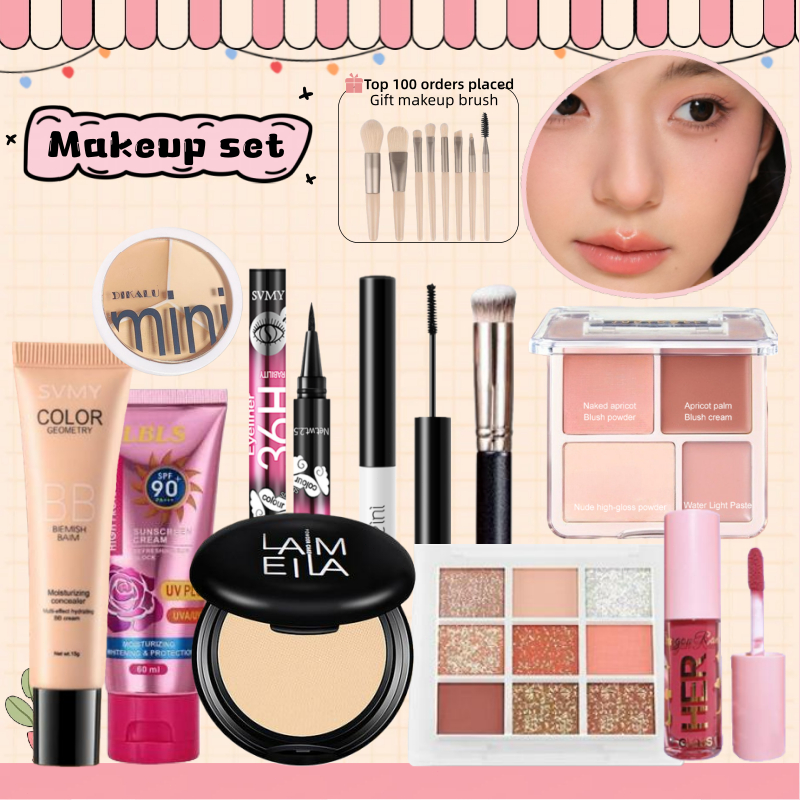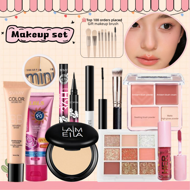 [Daily Makeup Set 18 Pcs] - Low Saturation Powder Blusher Plate+waterproof BB Cream+sunscreen,etc