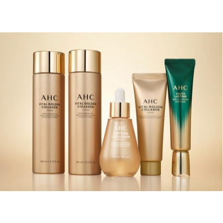 [Korea] Authentic | AHC | Vital Golden Collagen Youth Total Care Set | Anti-Aging Skincare | Firming & Hydration | 5-Step Full Care Set