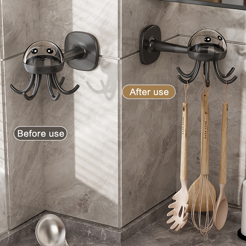 Kitchen Cook Tools Storage Rack Octopus Rotatable Hook Nail Free Installation Suspension Design Hook