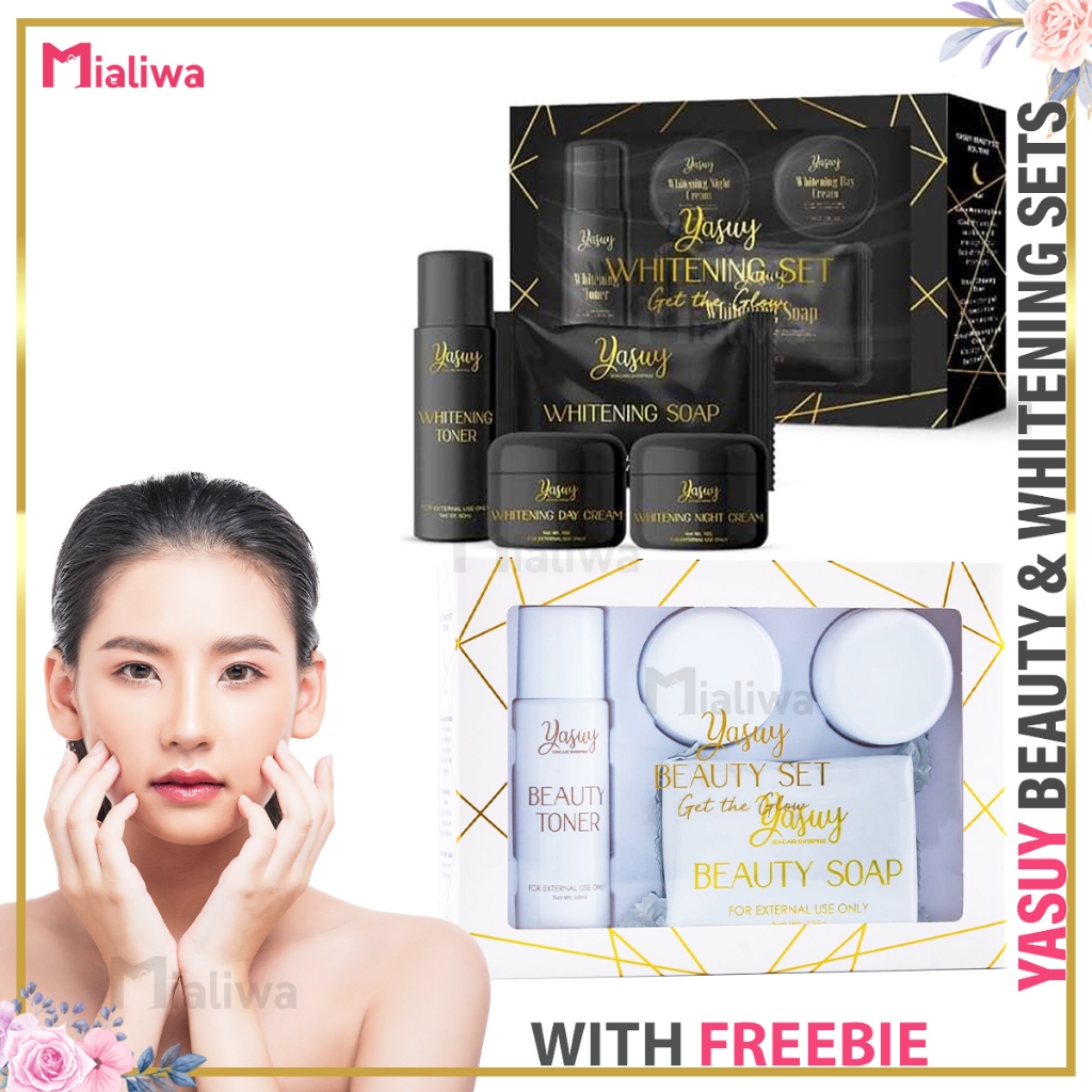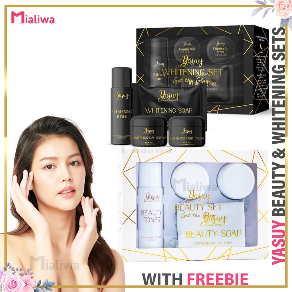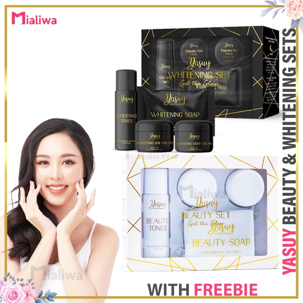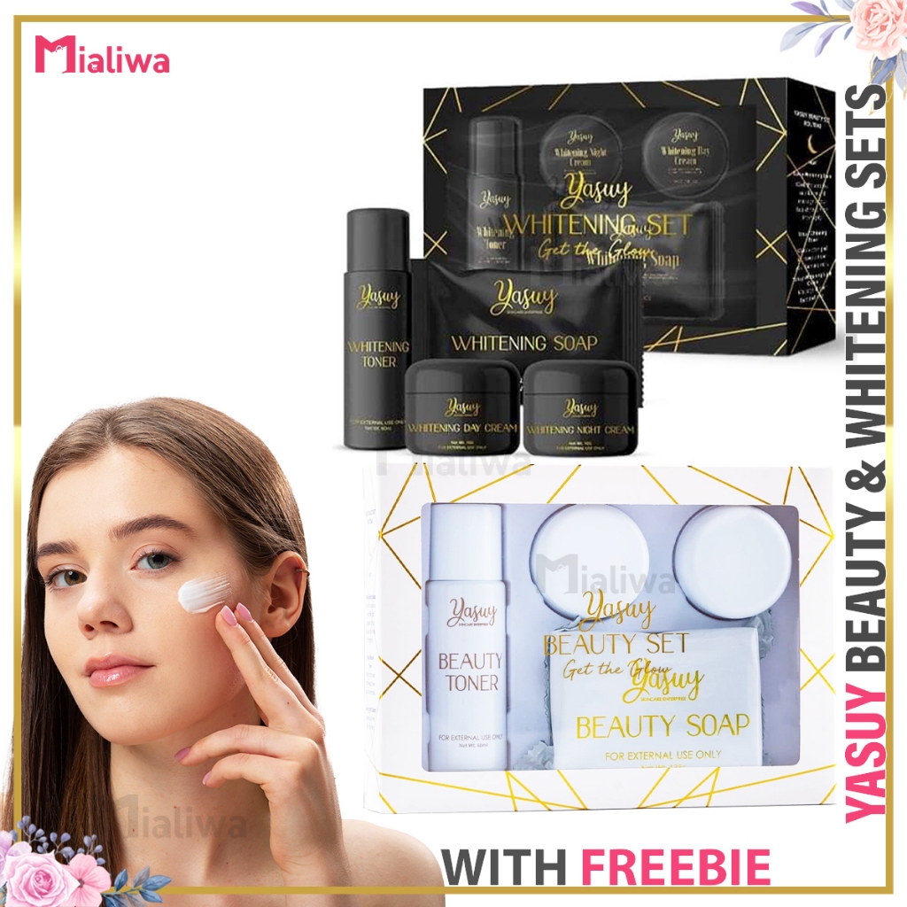 Yasuy Beauty & Whitening Set, Sunscreen Kojic Soap Toner Night Cream, Facial Exfoliating Skin Care