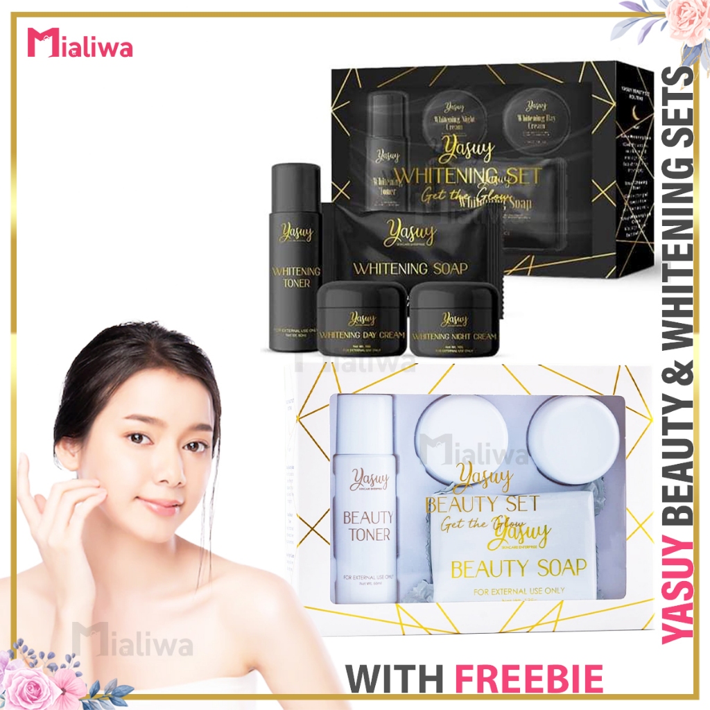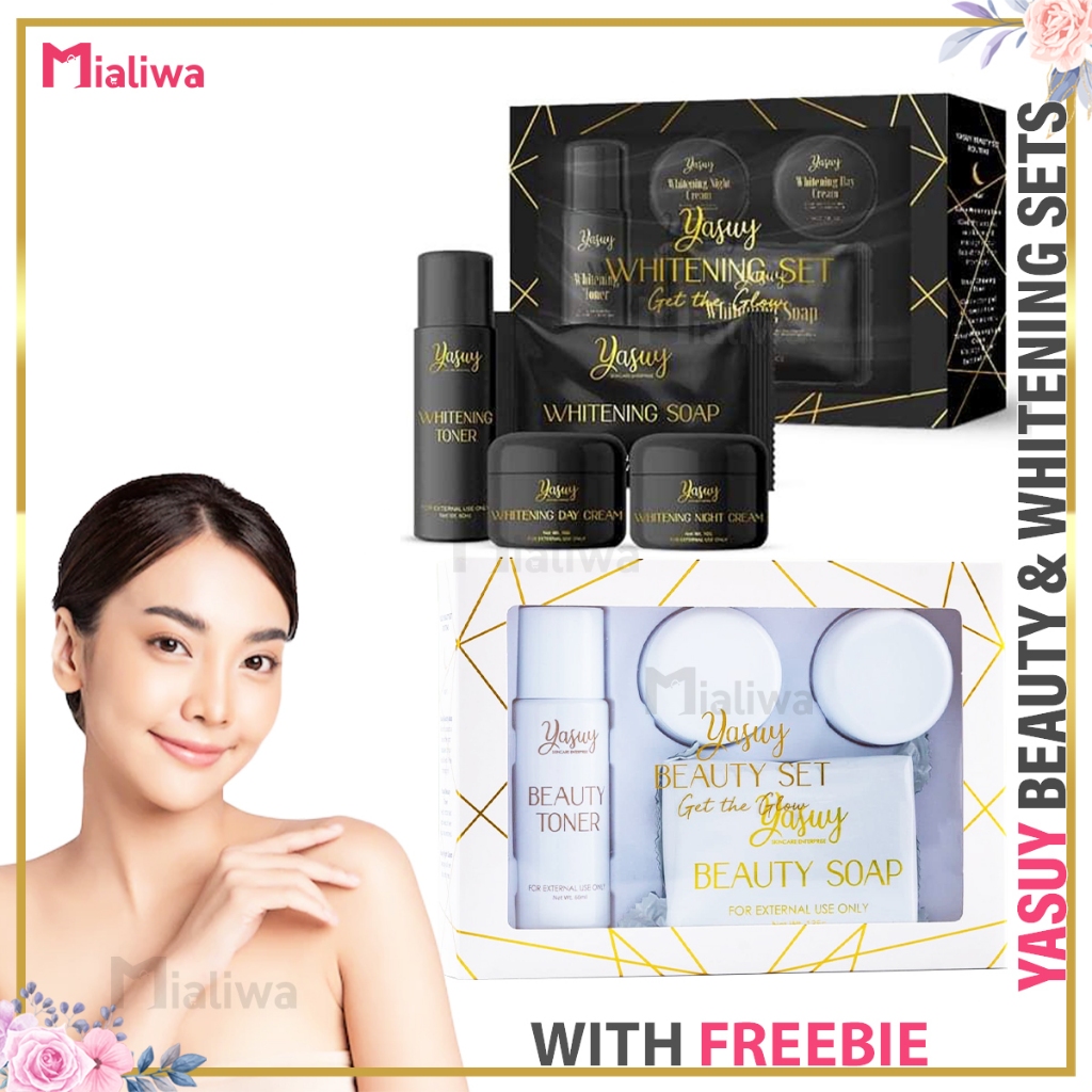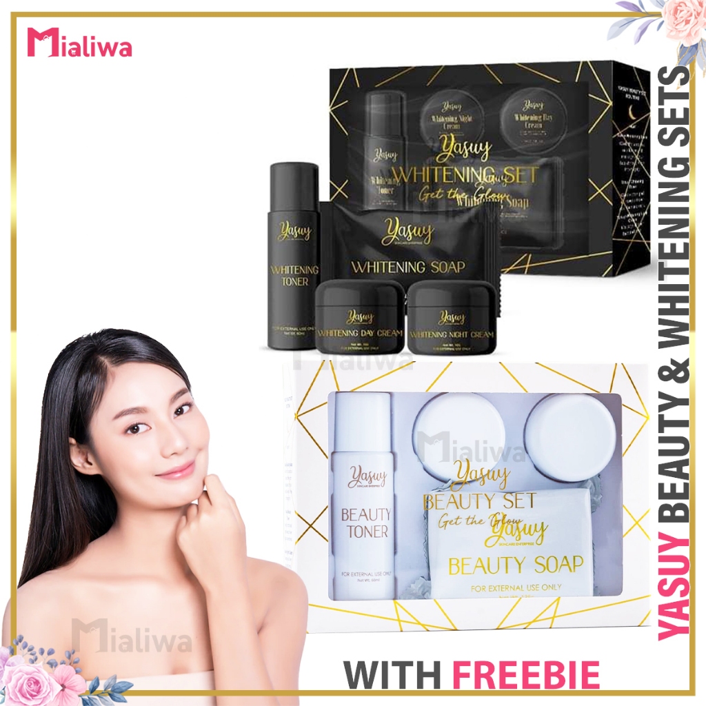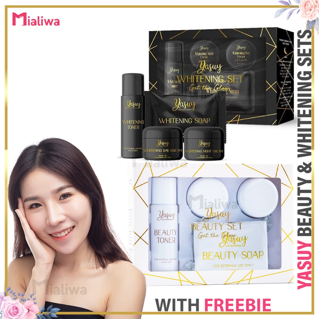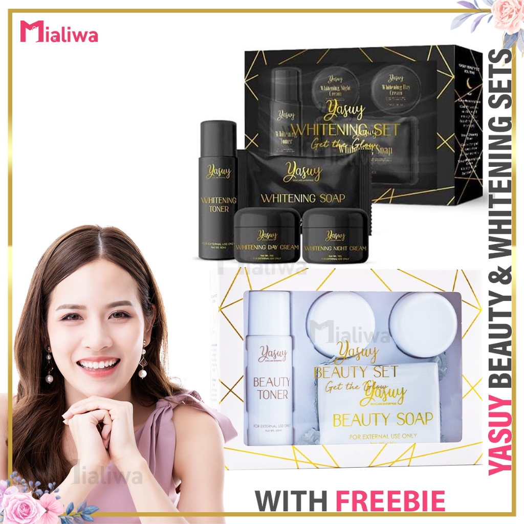 Yasuy Beauty & Whitening Set, Sunscreen Kojic Soap Toner Night Cream, Facial Exfoliating Skin Care