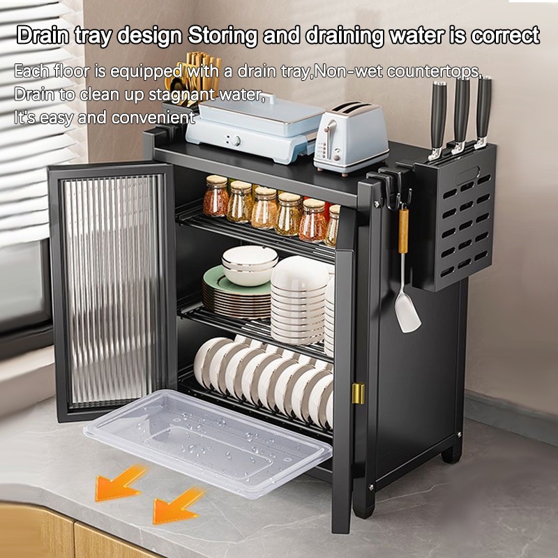 Kitchen Dish Cabinet Fully Enclosed Dustproof 2/3 Layer Bowl And Plate Dish Organizer Storage Rack