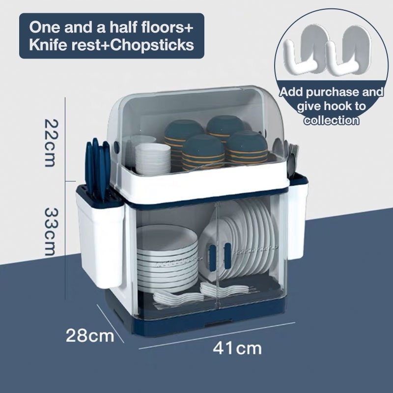 Kitchen Dish Cupboard With Cover Dustproof Plastic Multifunctional Tableware Organizer Drain Rack