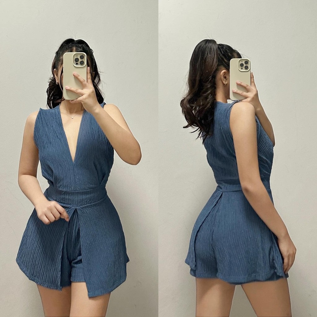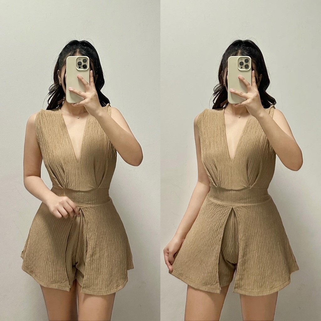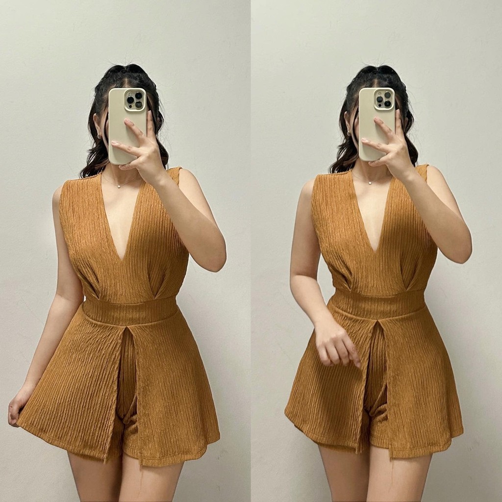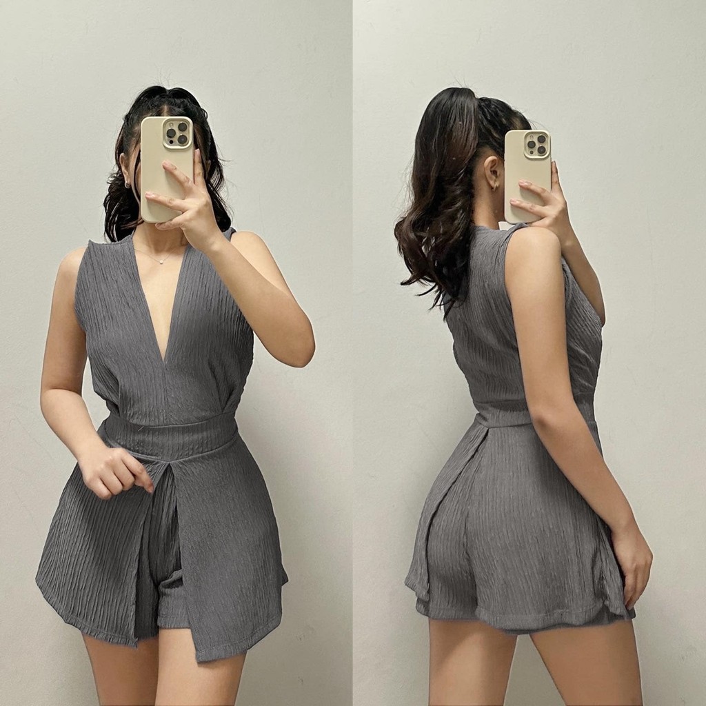 ZEALO Fallon Plunge V-Neck Sleeveless Top and Shorts Terno Coordinates Set Bark Crepe