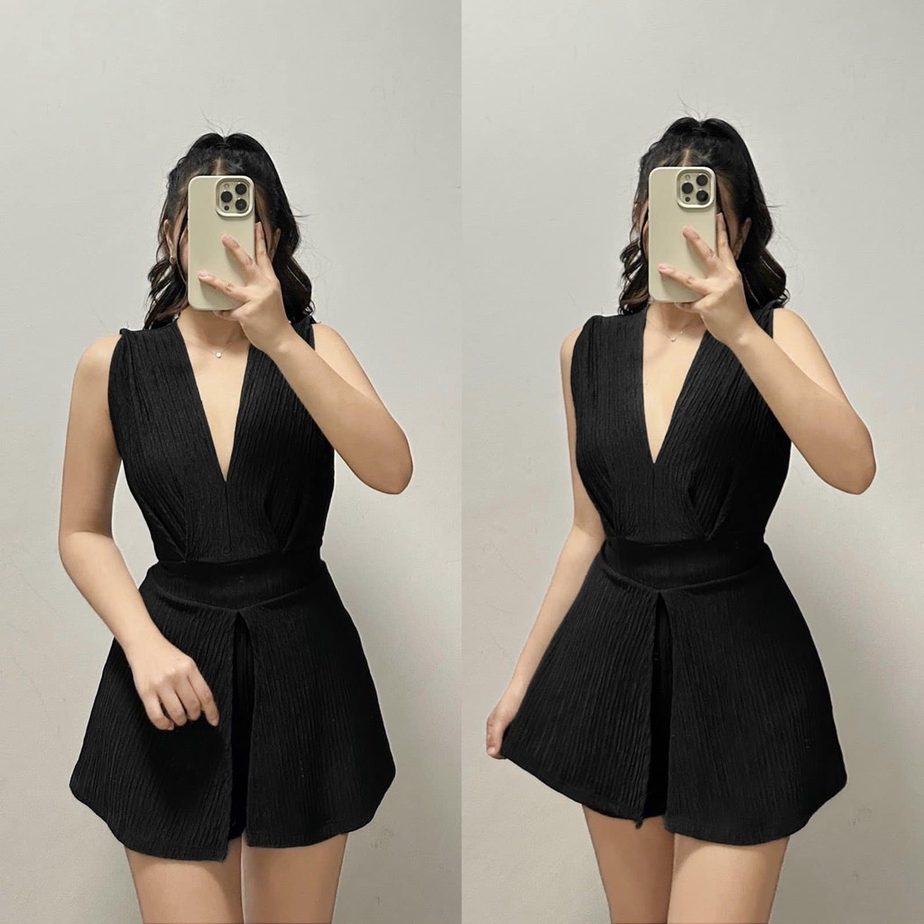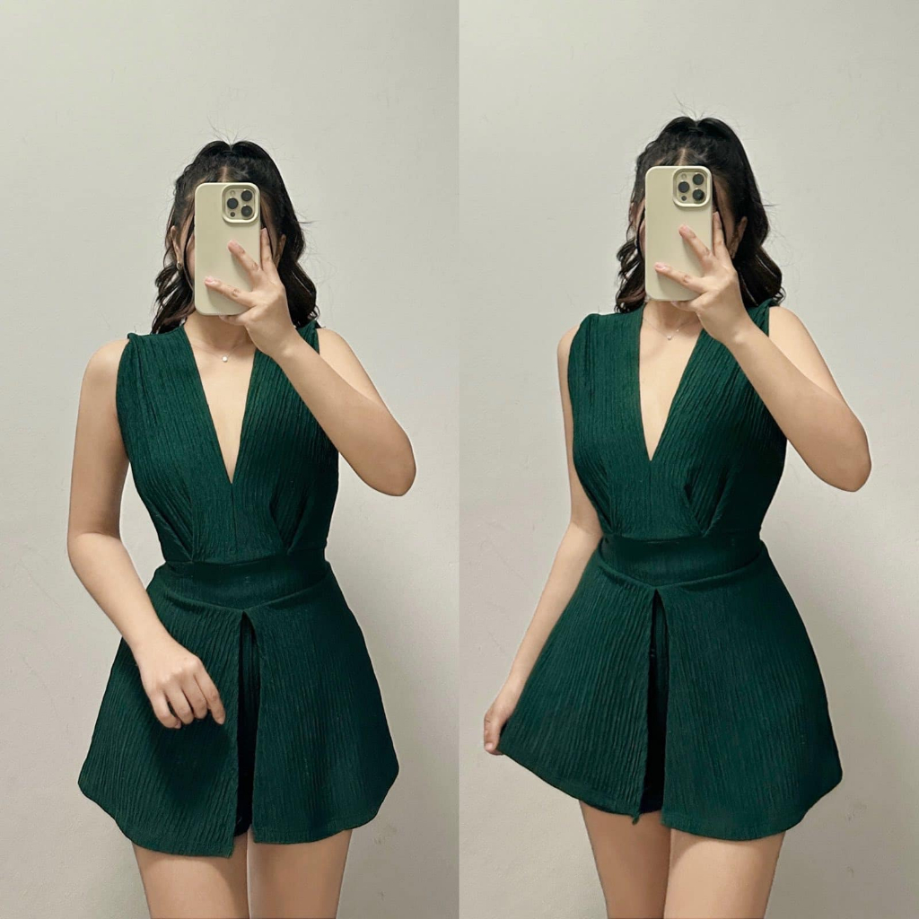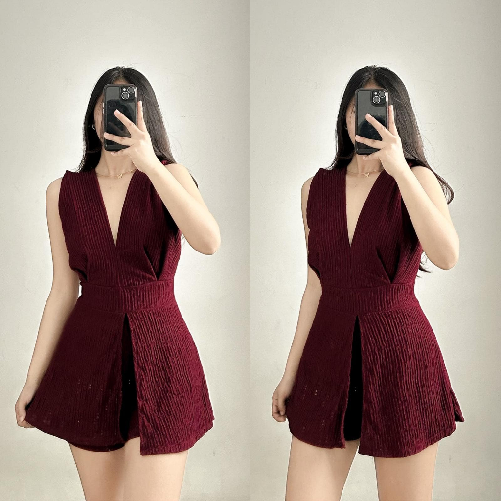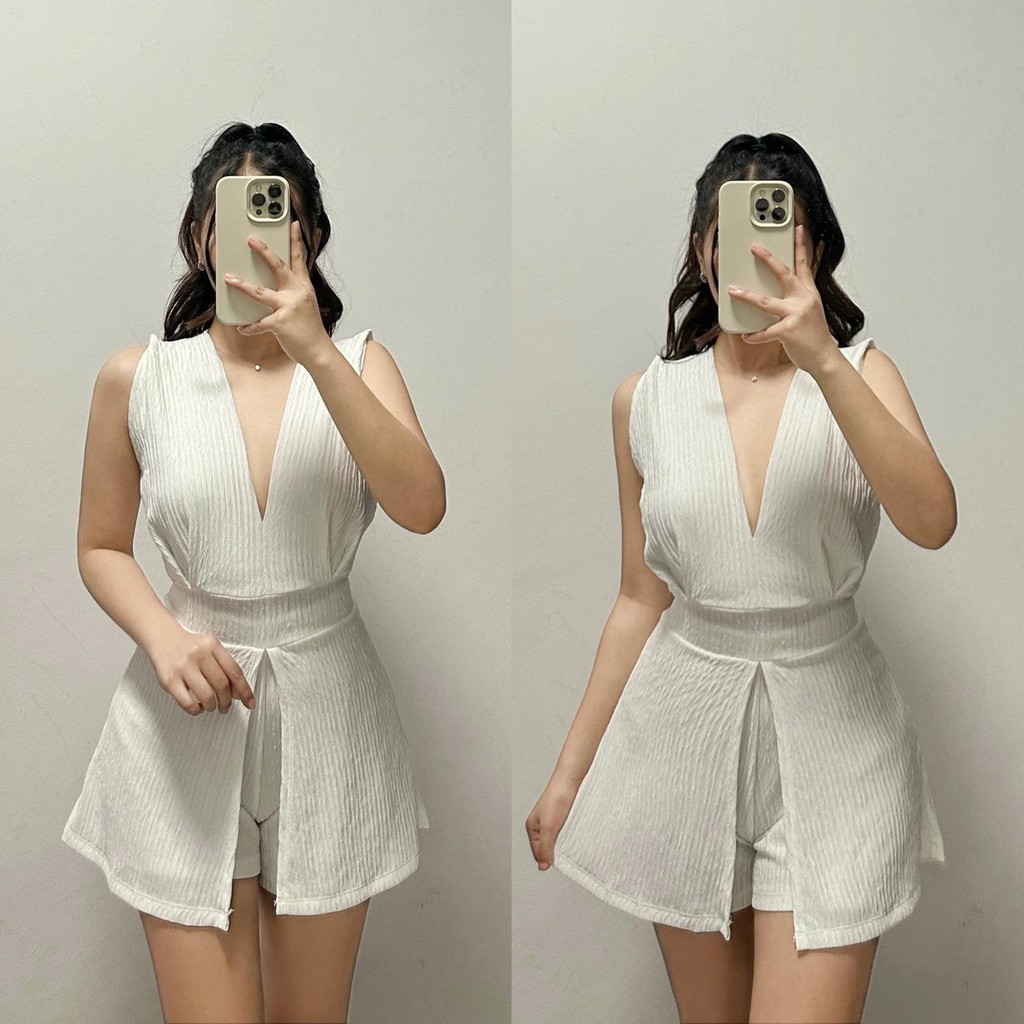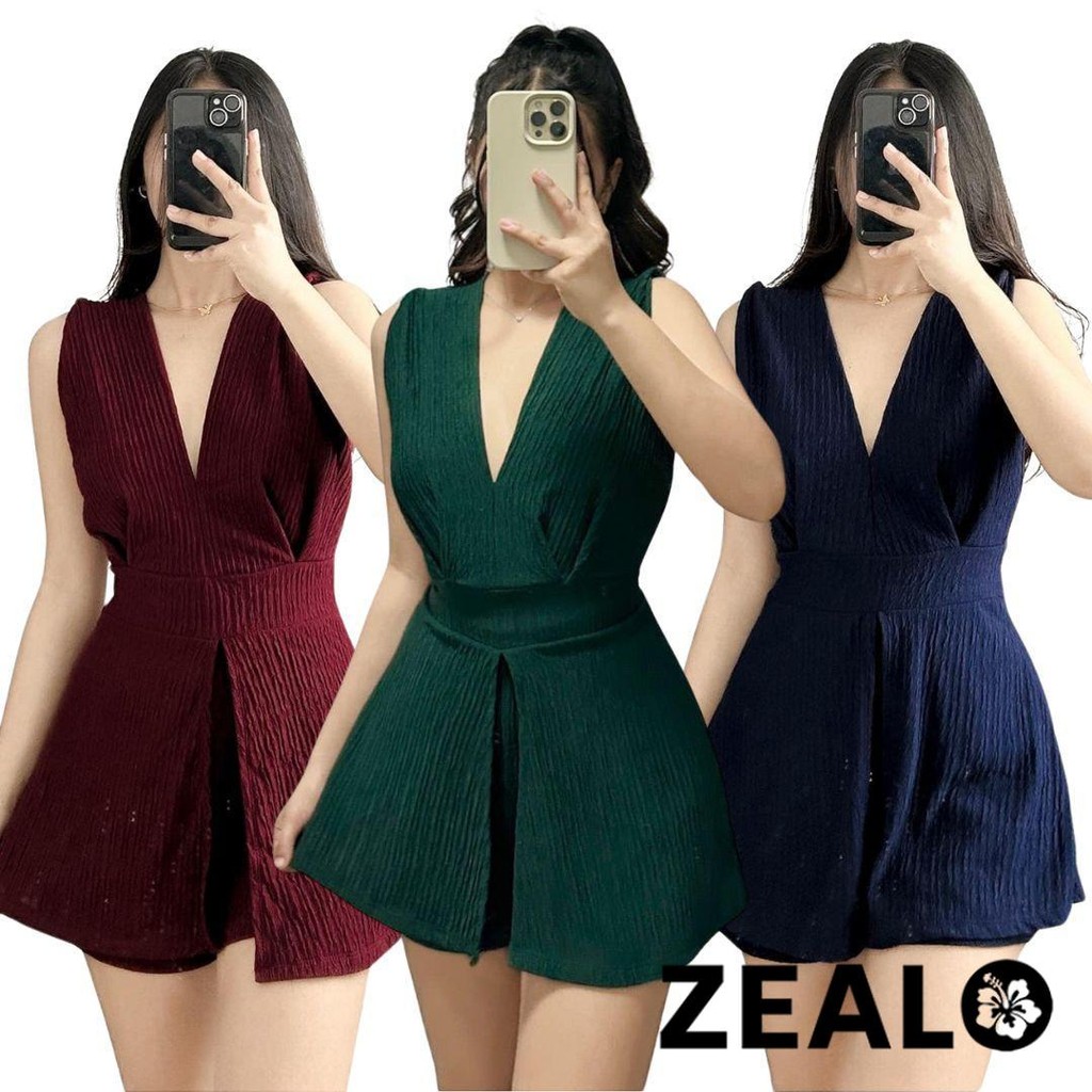 ZEALO Fallon Plunge V-Neck Sleeveless Top and Shorts Terno Coordinates Set Bark Crepe